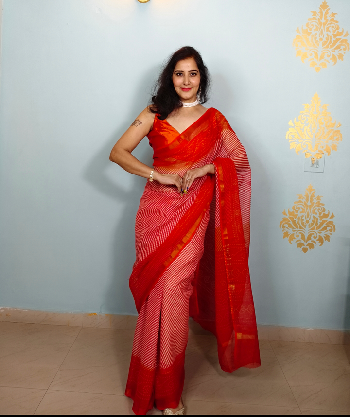 Lali- Red Kota Doria Leheriya Bandhej Saree