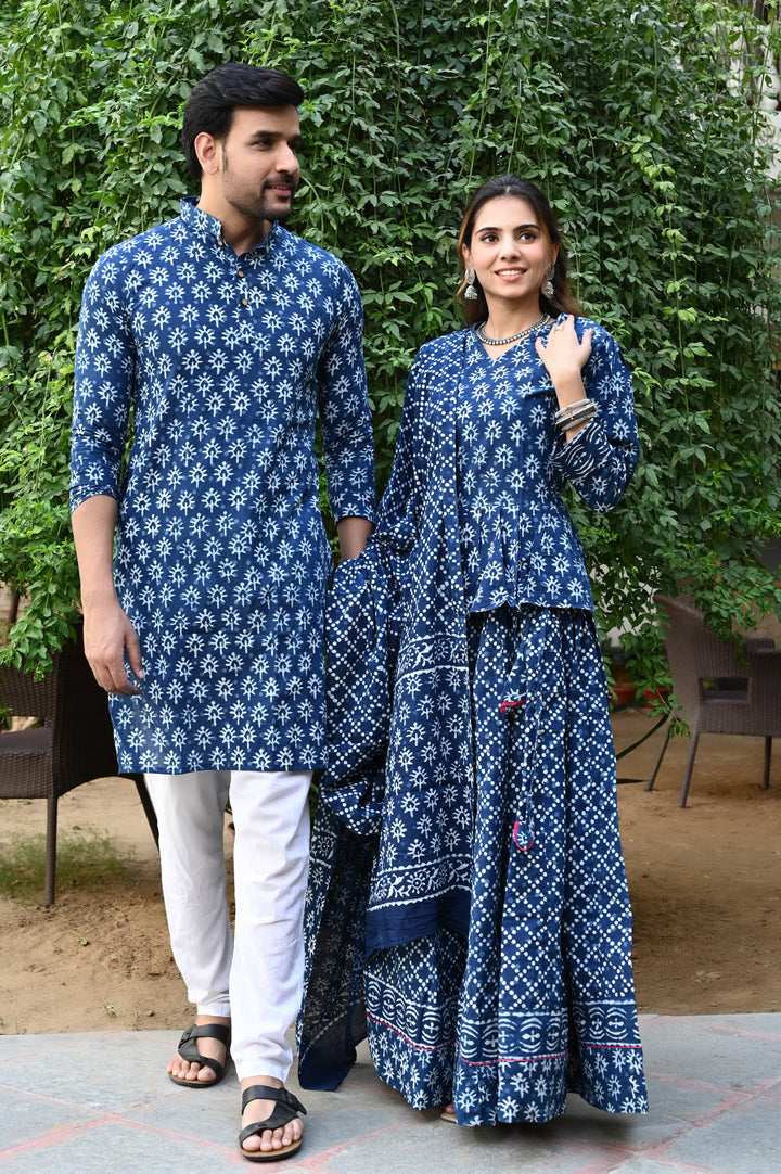 BLue Pure Cotton Twinning Couple Set In Block Print