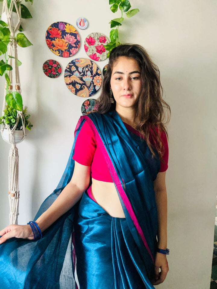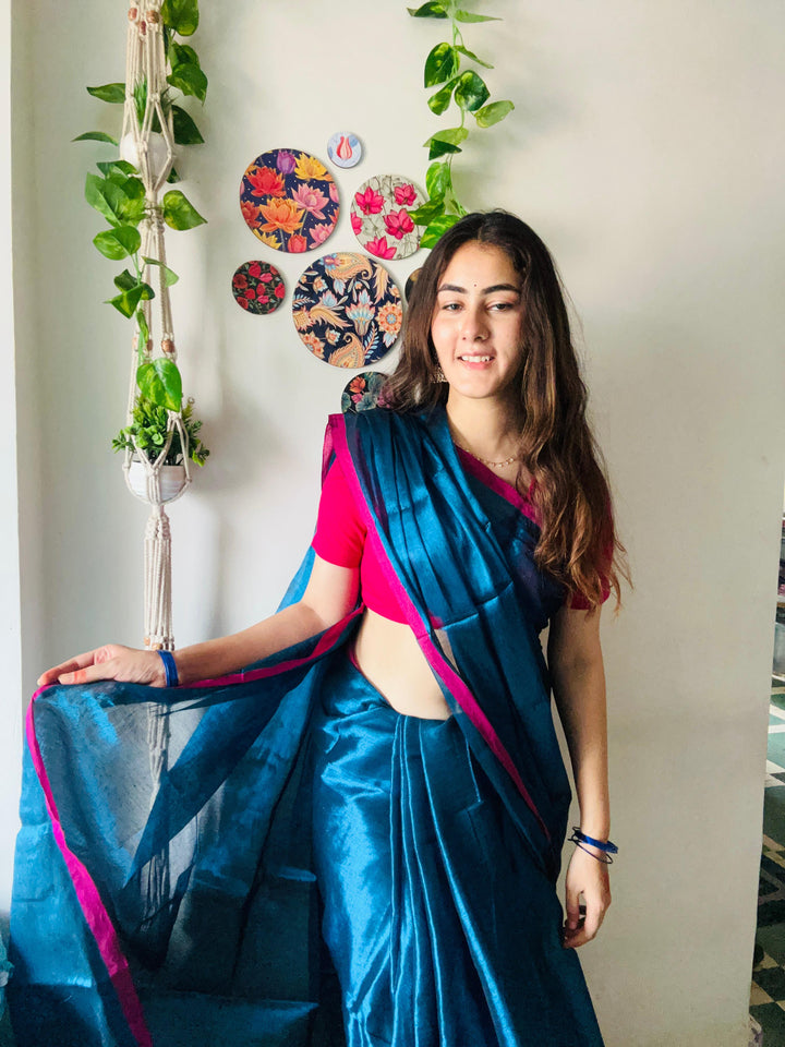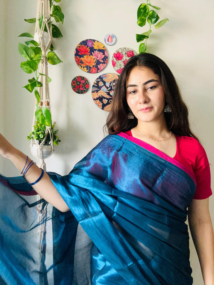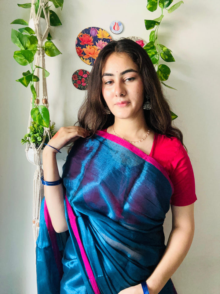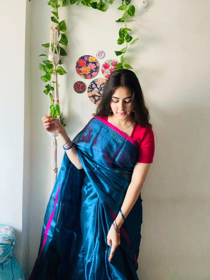 - Metallic Blue Tissue Silk Saree