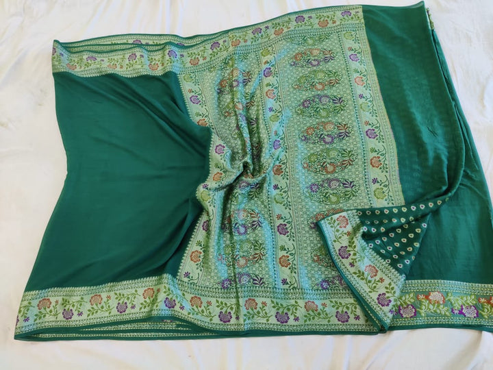 Forest Green Banarasi Chiffon Meenakari Elegant Saree
