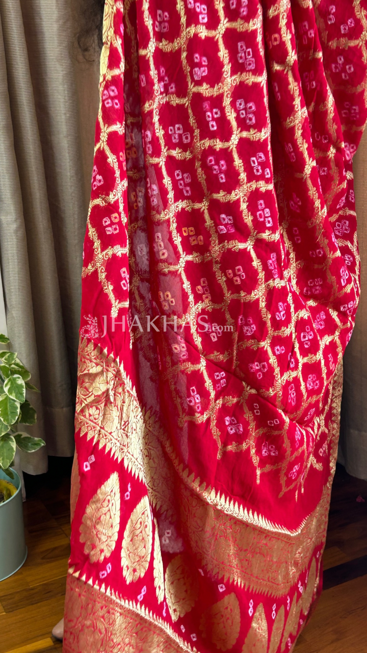 - Bridal Red Trending Banarasi Ghatchola Georgette Dupatta