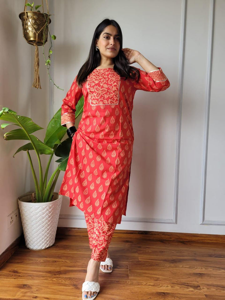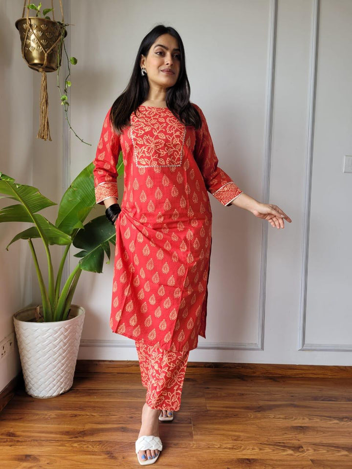 Red Bagru Handblock printed designer Cotton Suit set ..( Office Wear)*