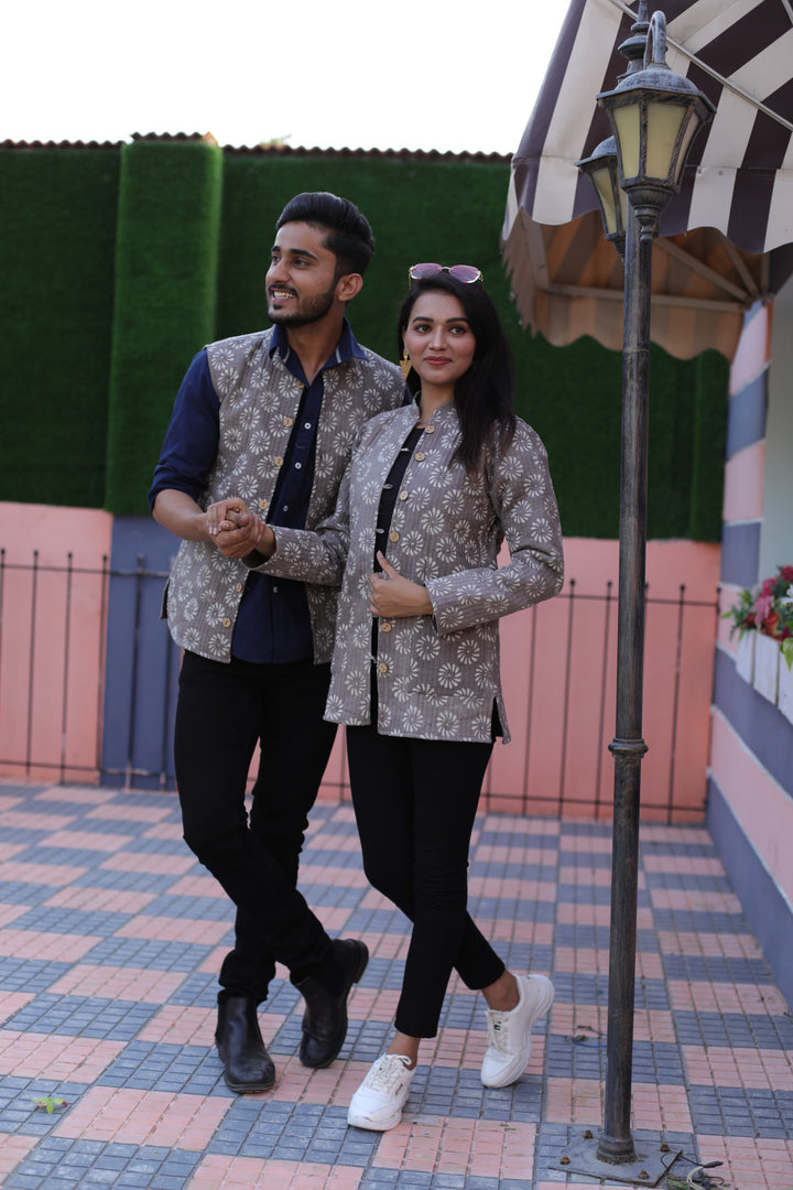 Brown Color Twinning Couple Pure Cotton Bagru Print Quilted Reversible Jackets Sale price₹1,899.00 INR