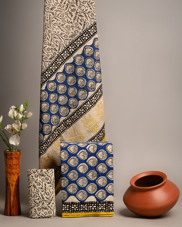 Off white Indigo Hand block Print Cotton Suit
