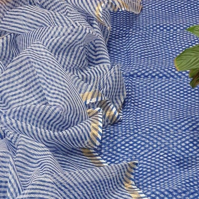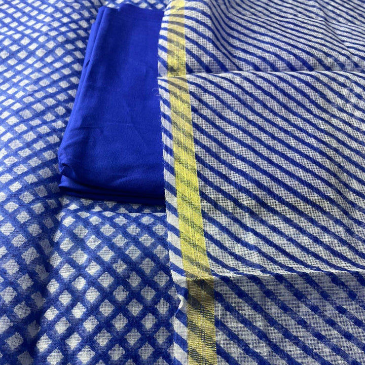 Fancy Kota Doriya Leheriya Suit In Blue This Traditional Suits 2.5 Mtr Top In Kota ,2.5 Mtr Dupatta In Kota,2.5 Mtr Bottom In Cotton, Wear This Kota Doria Suit With Kundan Necklace And Jhumkas On Day Time Function, This Designer Suit Comes With Beautiful Dupatta That Seems Perfect For Any Occasion,Free Shipping And Cod Available, Shipping Worldwide.