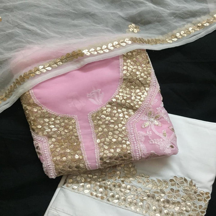 Fancy Light Pink Chikankari Georgette Gota Patti Salwar Kurti Set unstitched