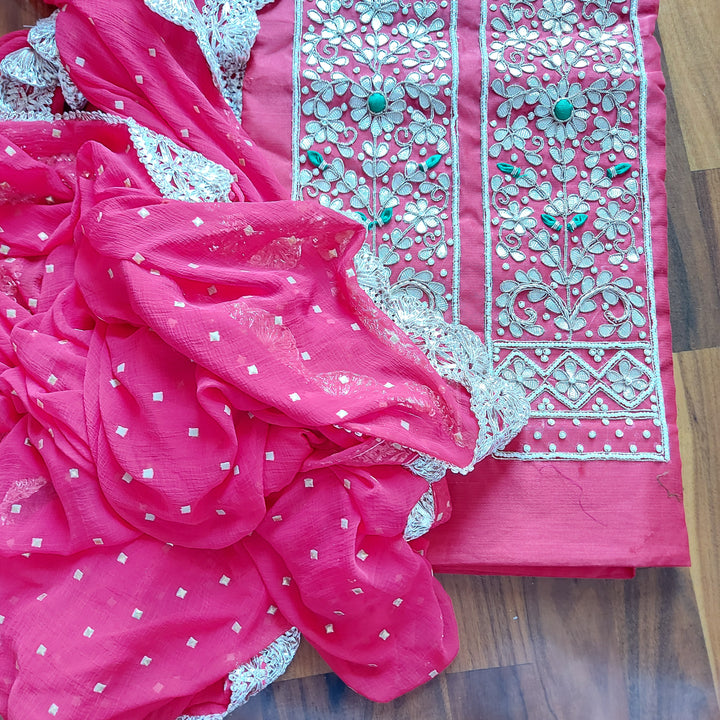 Stylish Red Gotawork Salwar Suitunstitched Salwar Materials,Designer Salwar Suits Online. Every Suit Is 2.5Mtr Top Length And 2.5 Mtr Bottom And 2.5 Mtr Dupatta Length, Shop Exclusive Collection Of Designer Salwar Suit At Jhakhas.Com. Free Shipping And Cod Available, Shipping Worldwide.