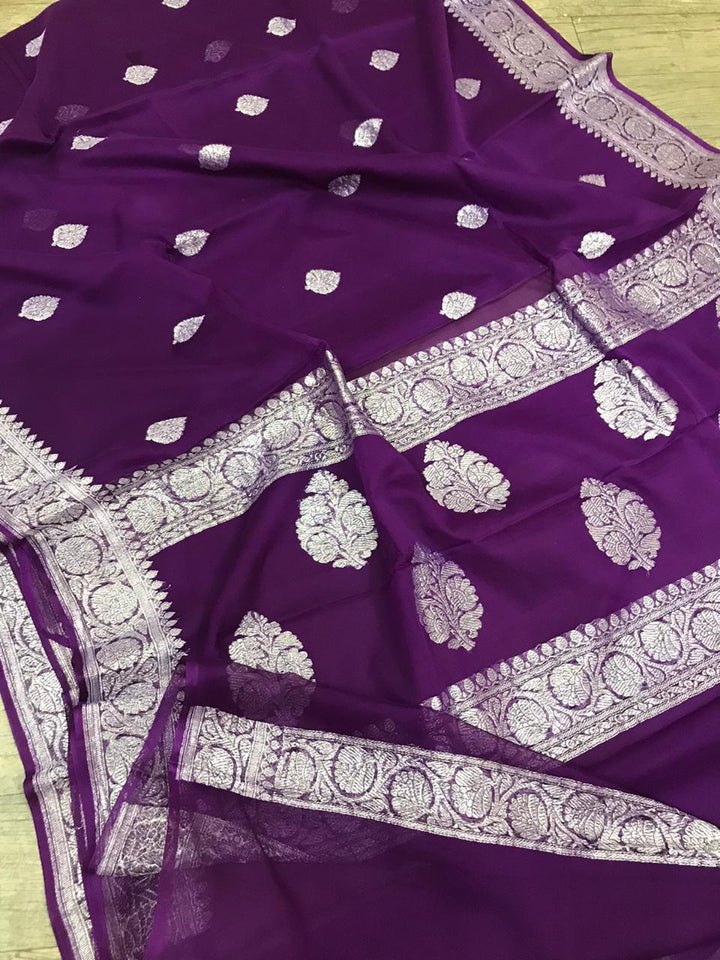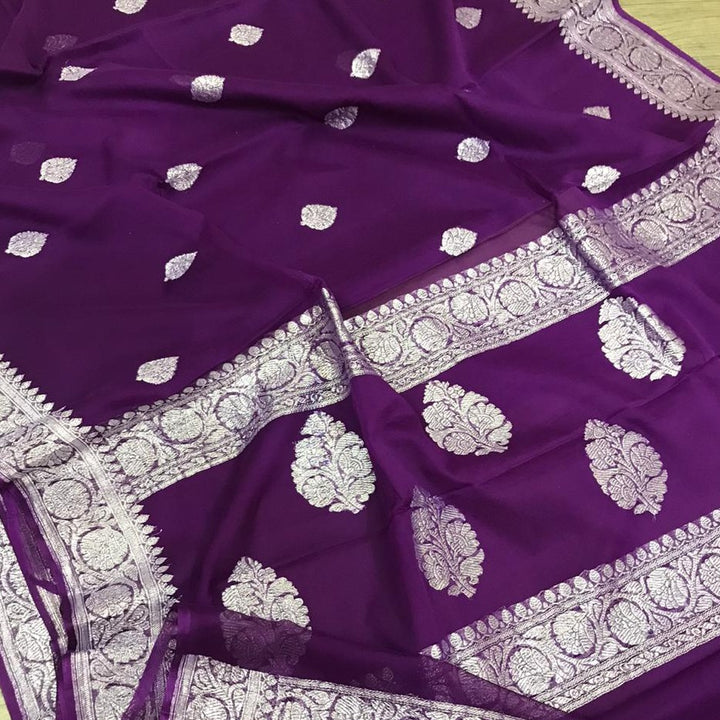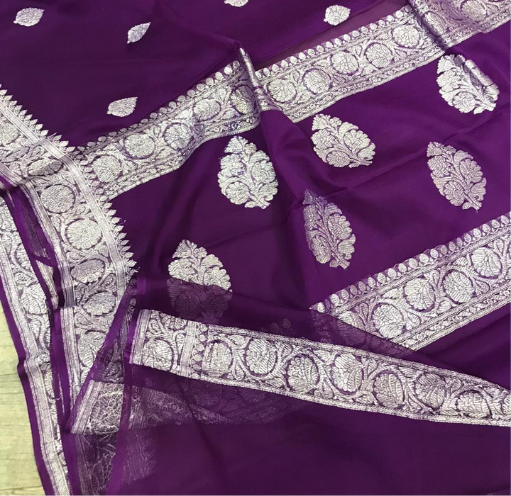 Royal Purple Buti Jaal Banarasi Chiffon Saree