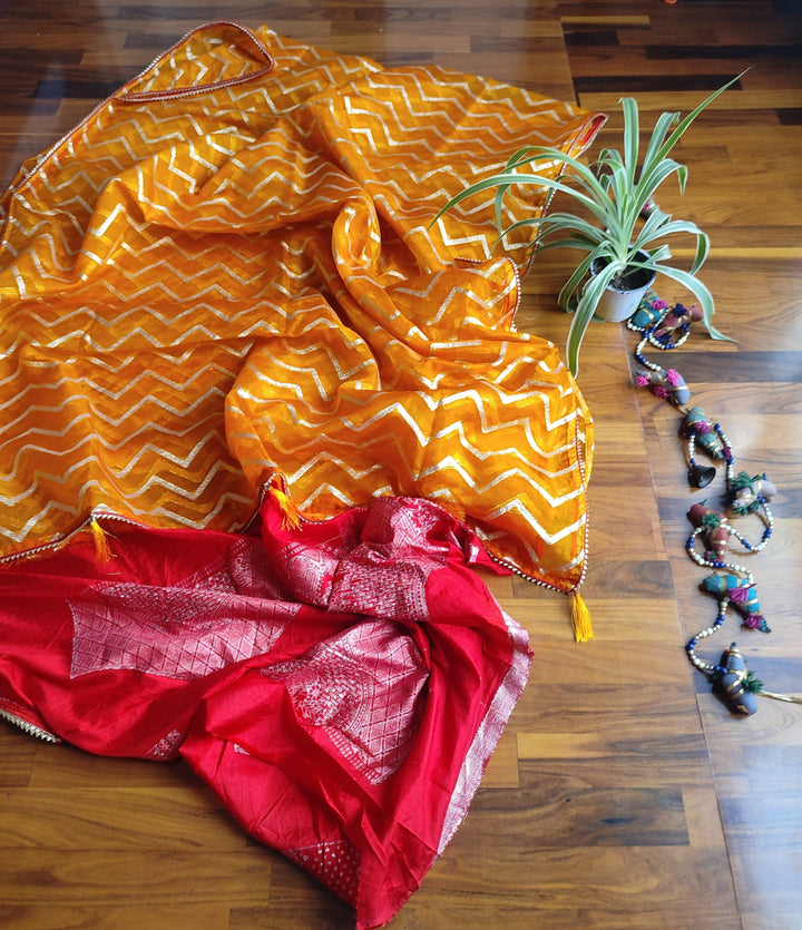 Organza Saree In Yellow Designer Saree With Zari Weaving, This Wine Saree Length Is 5.5 Meter Comes With Blouse Of 80 Cm As Shown In Picture, Free Shipping And Cod Available, Shipping Worldwide.