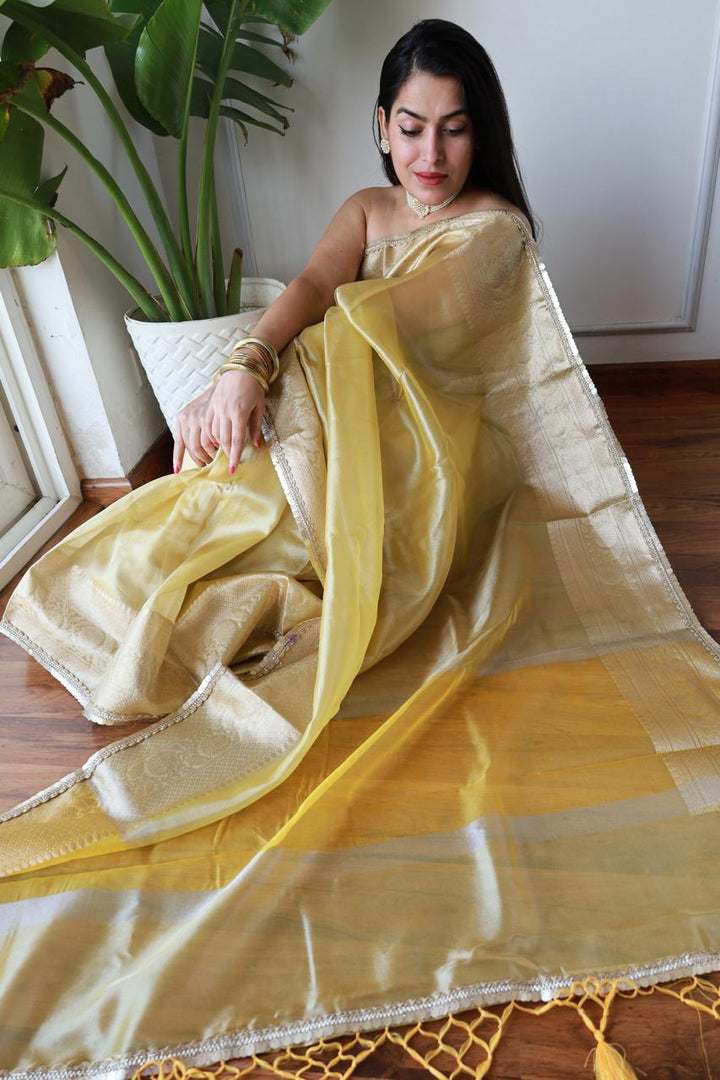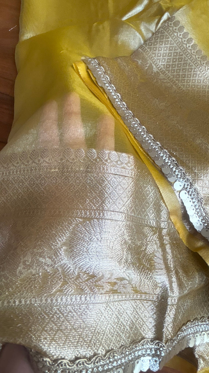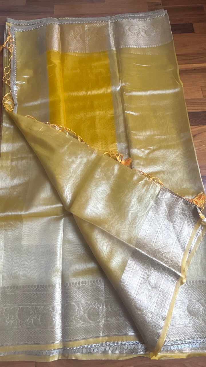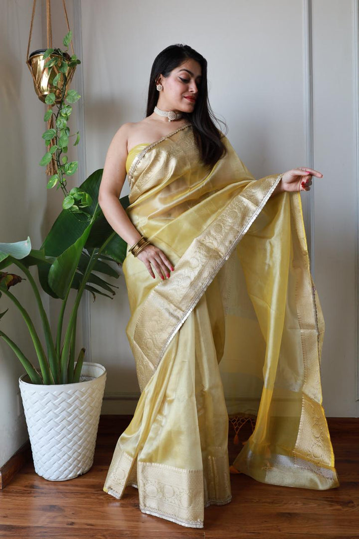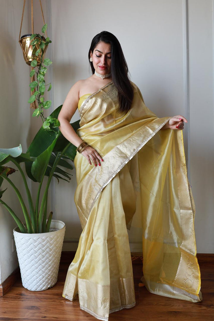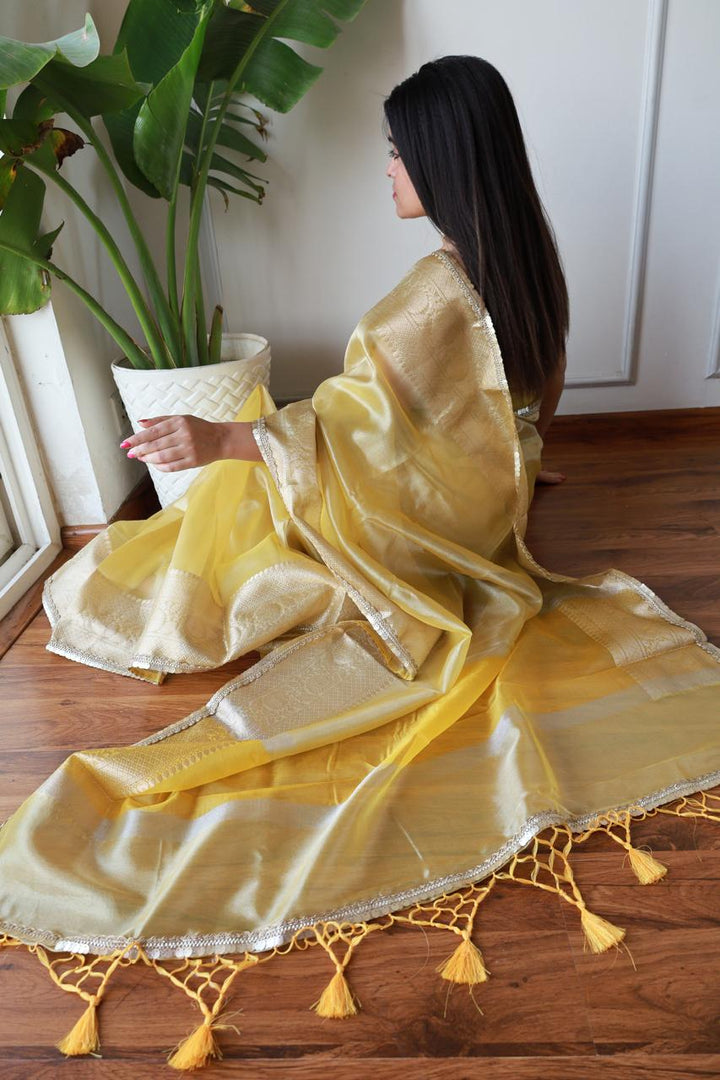 Celebrity Inspired Yellow Tissue Saree