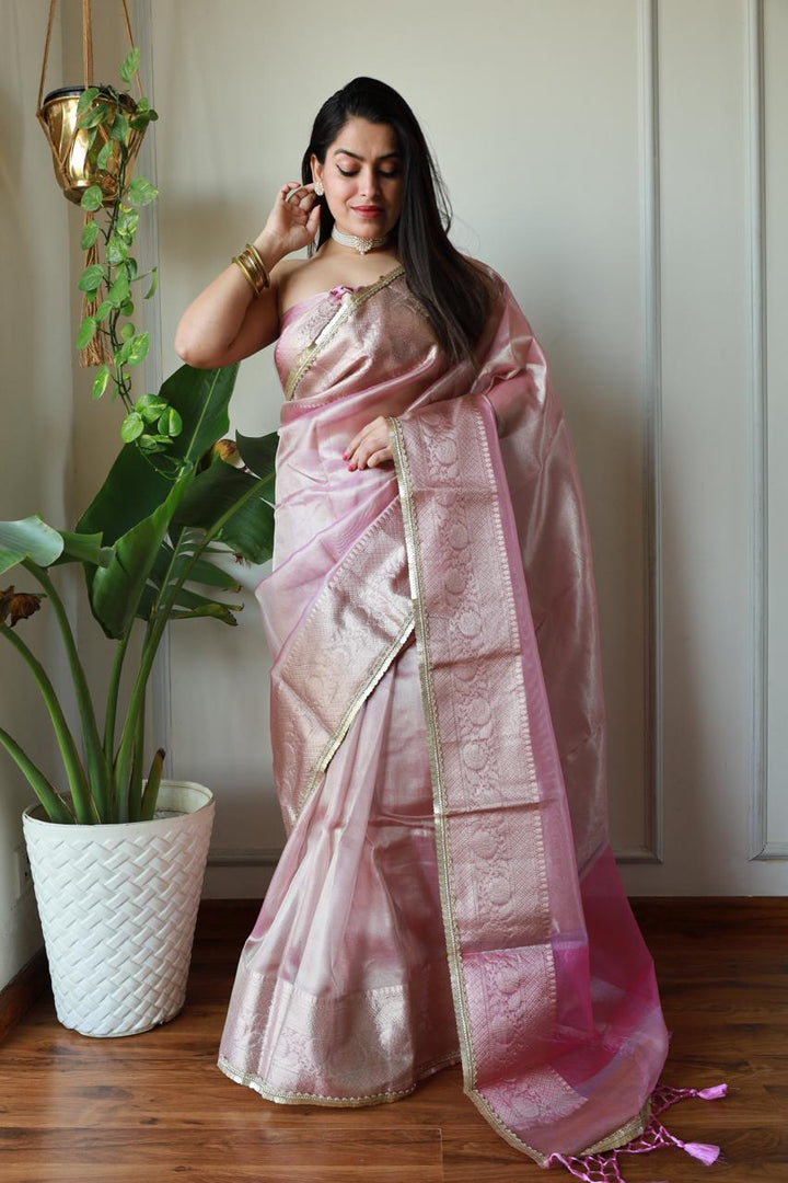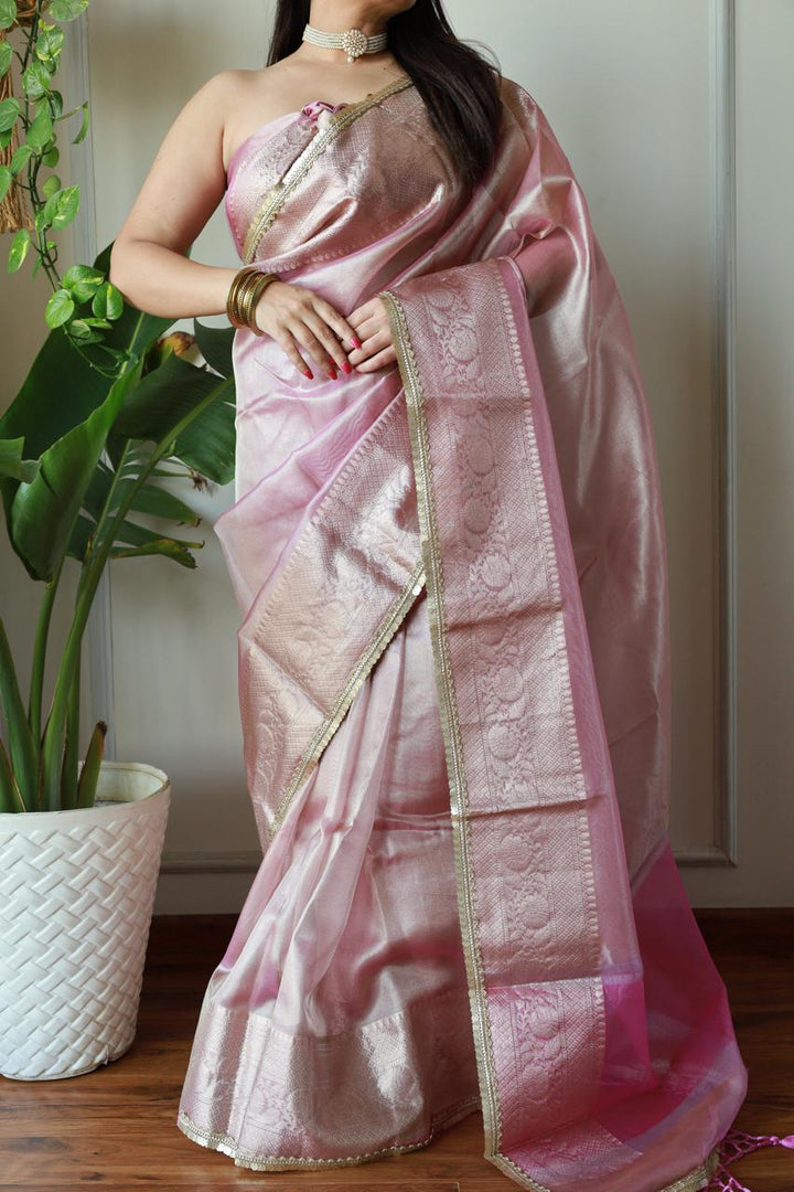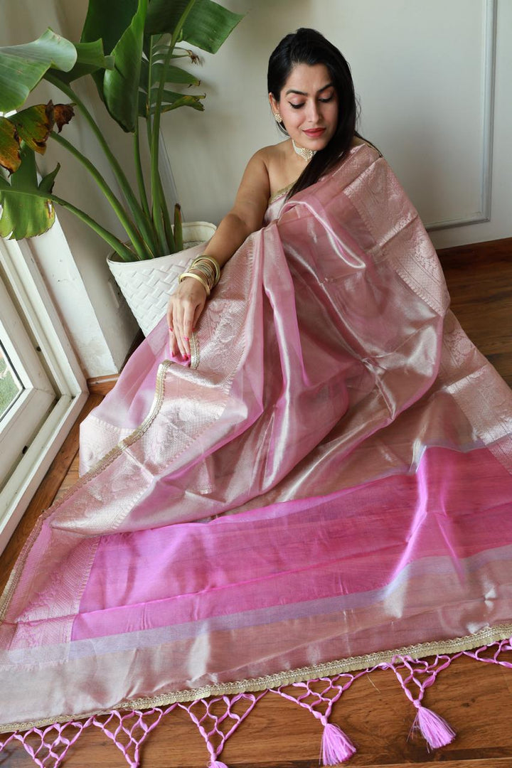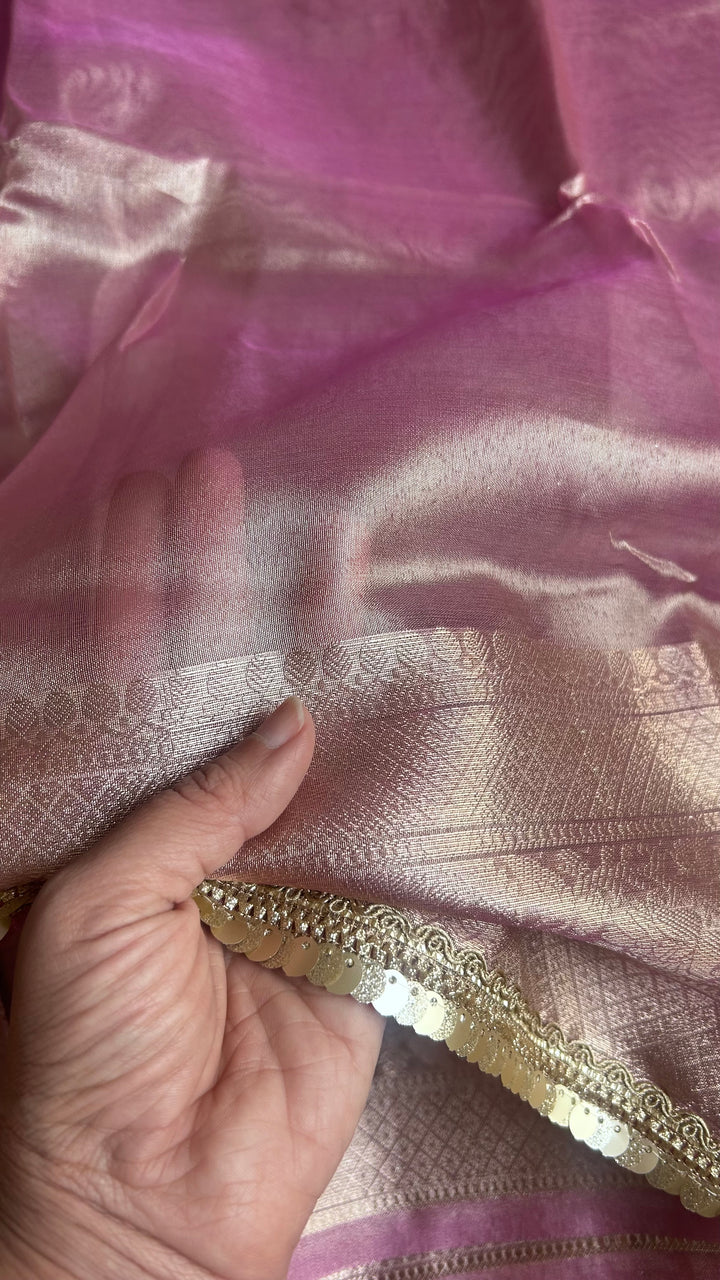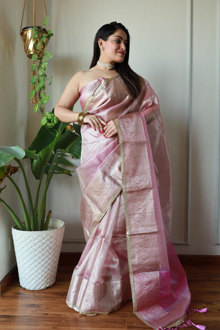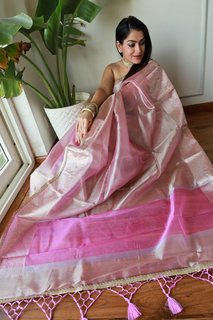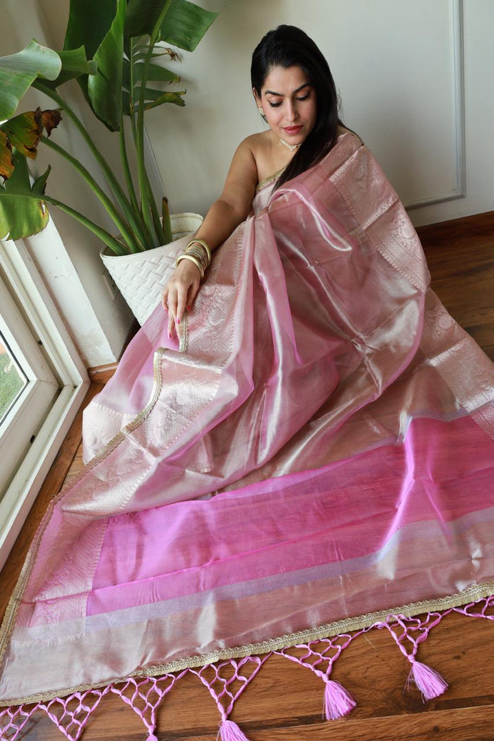 - Jaahnavi kapoor inspired Pink Soft Tissue Saree