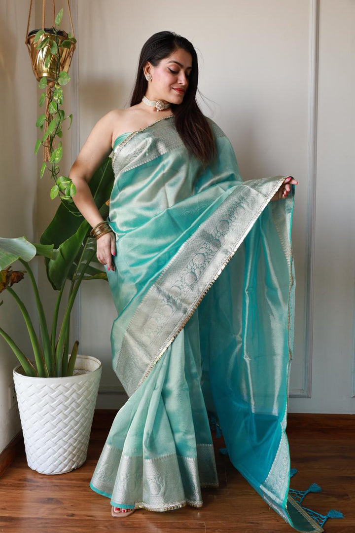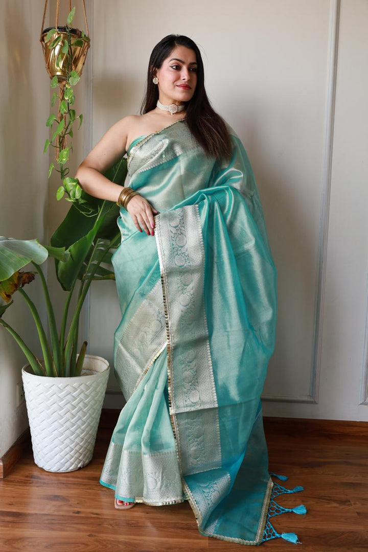 Celebrity Loved Blue Tissue Saree