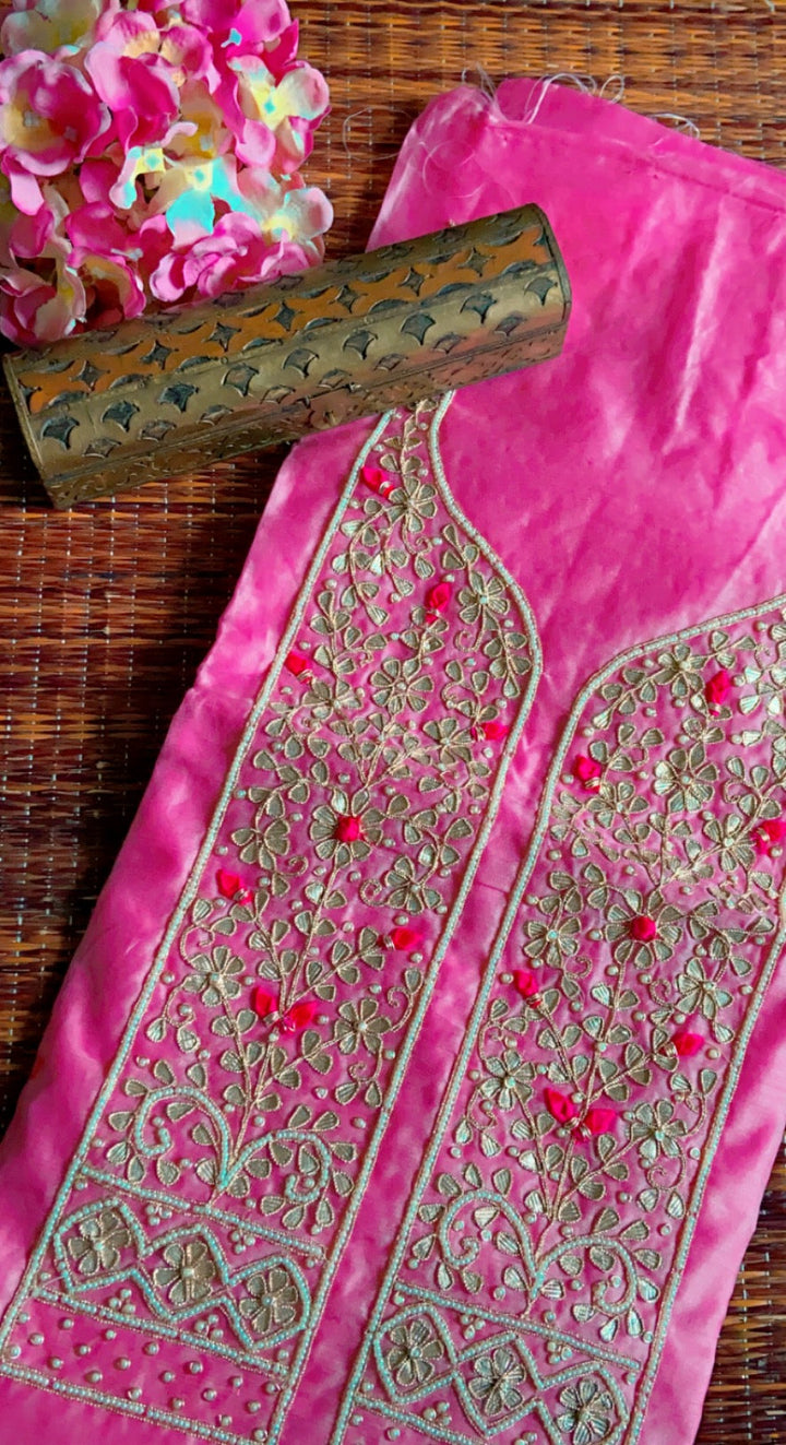An Absolute Stunner Is This Chanderi Kurti. This Unstitched Gota Patti Kurti Is Adorned With Gota Patti Work All Over Neckline. Ideal For Parties, Event, Outing & Weekend Get Together. This Gorgeous Unstitched Kurti is Adorned With Stunning Gota Patti Work On Neckline. This Unstitched Fabric Can Be Styled According To Your Design.