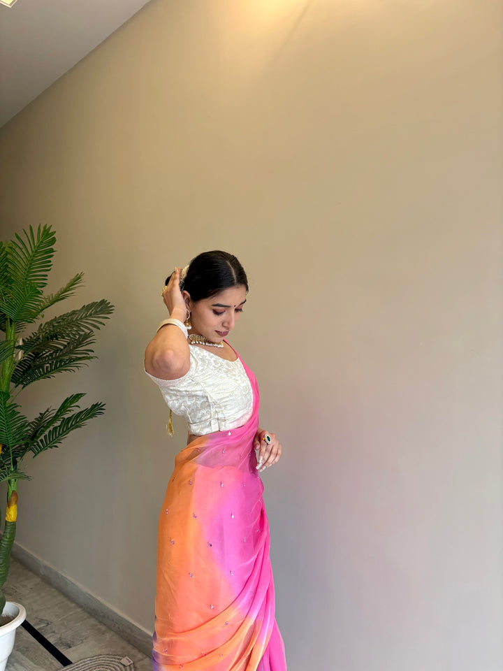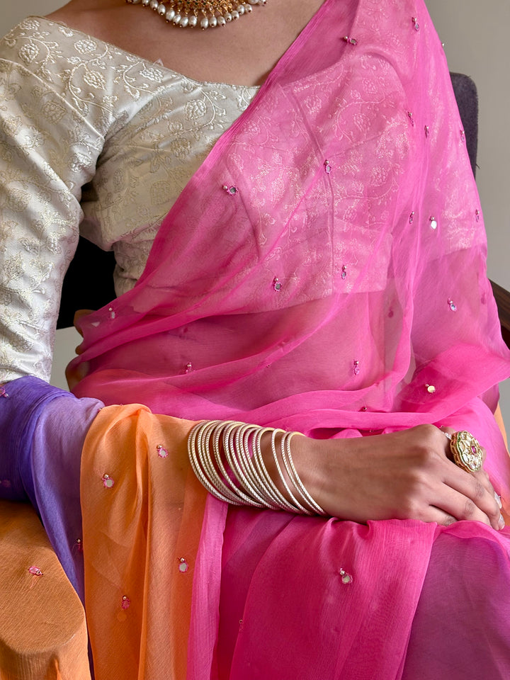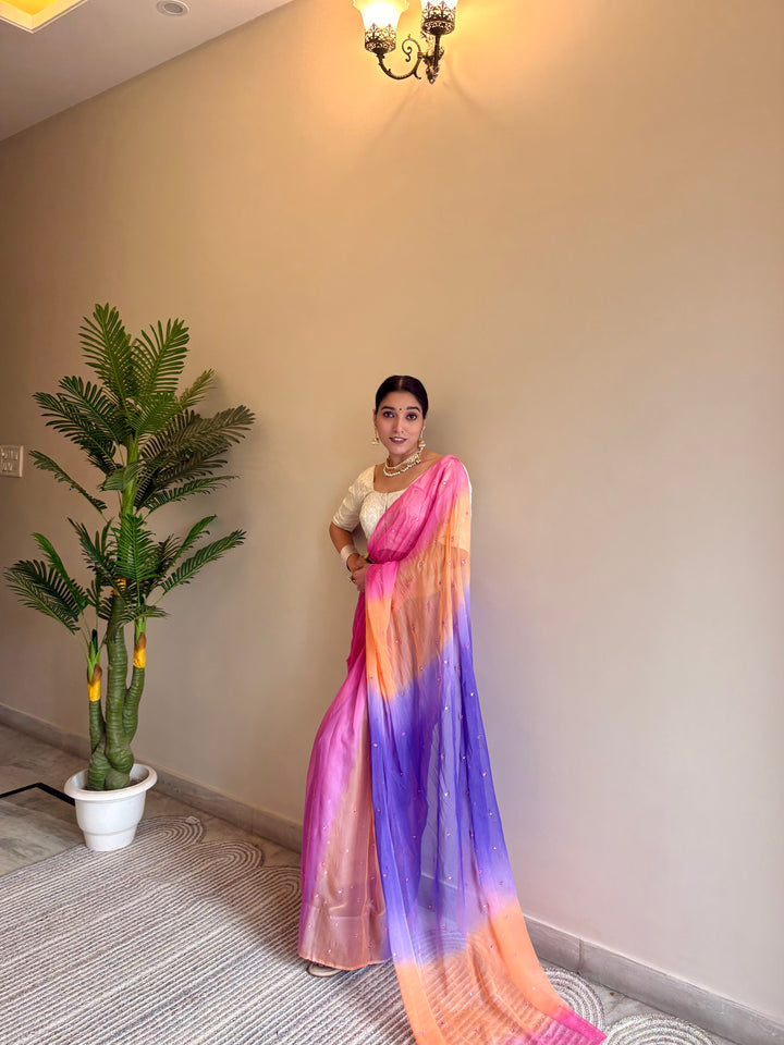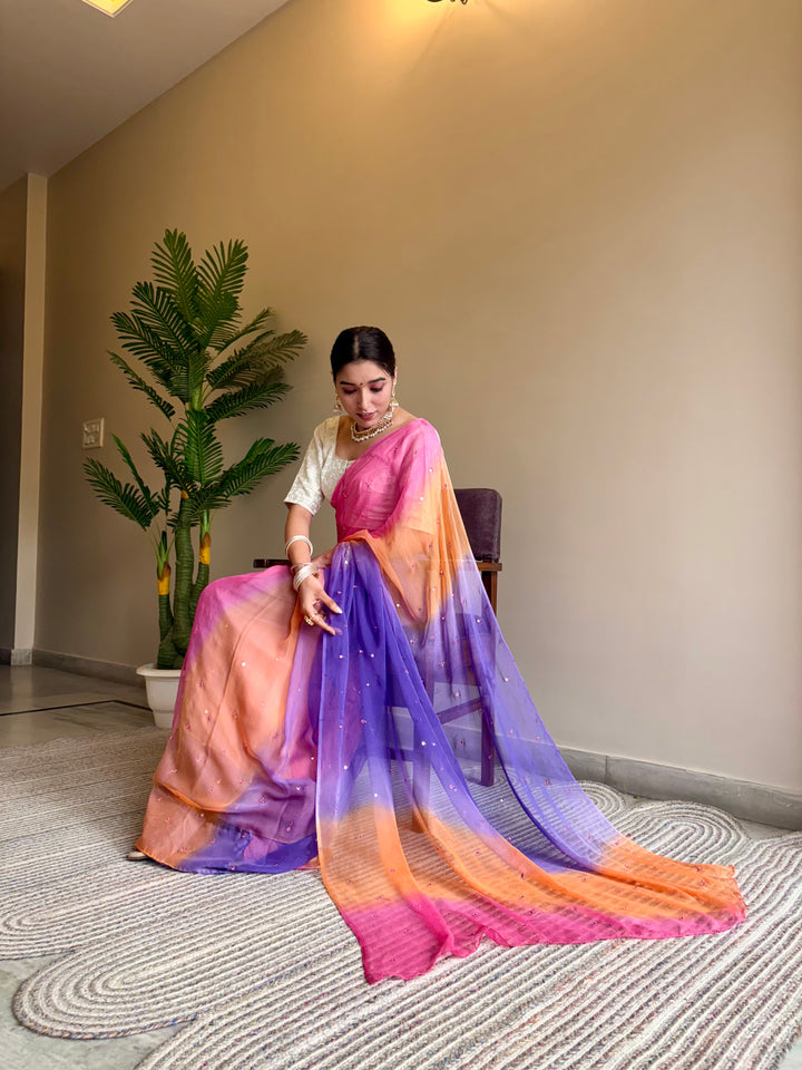 Chiffon Multicolor Mirror Work Saree