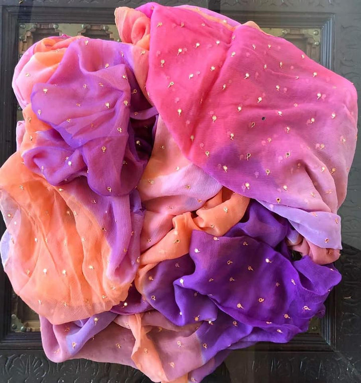 Pure Chiffon Gorgeous Look In Multicolor With Mirror Work. The Blouce Of Saree Is Chiffon. This Is Rajputi Pure Chiffon Saree Which Comes With Very Elegant And Light Work And Saree Is Also Very Light Weight.Multicolor Pure Chiffon Handwork Saree.