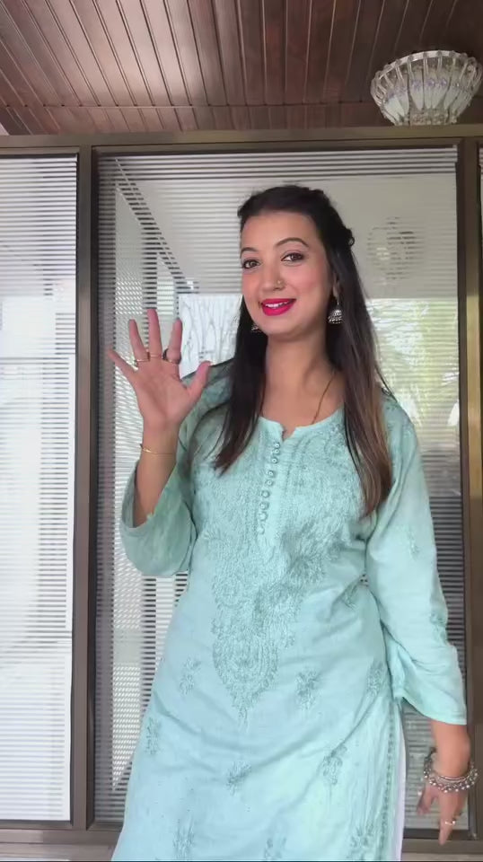- Decorated with intricate chikankari hand-embroidered patterns in white thread