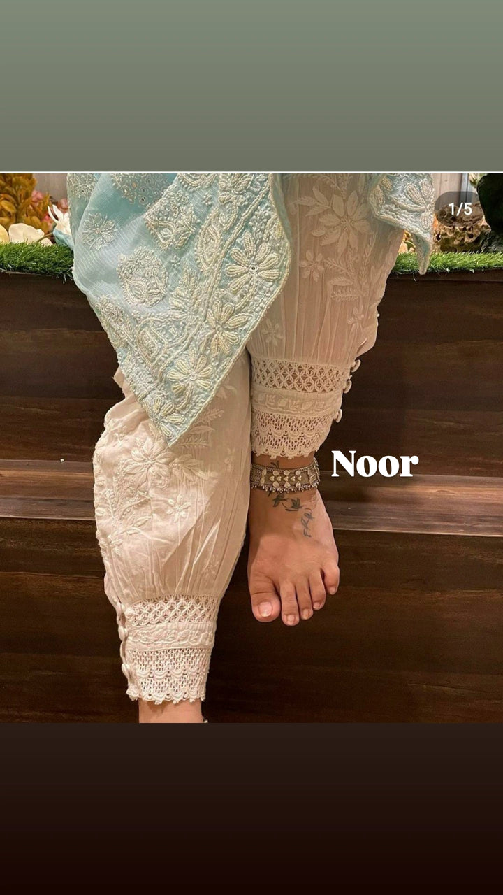 - White Chikankari Afghani Salwar ( also known as NOOR PANTS)