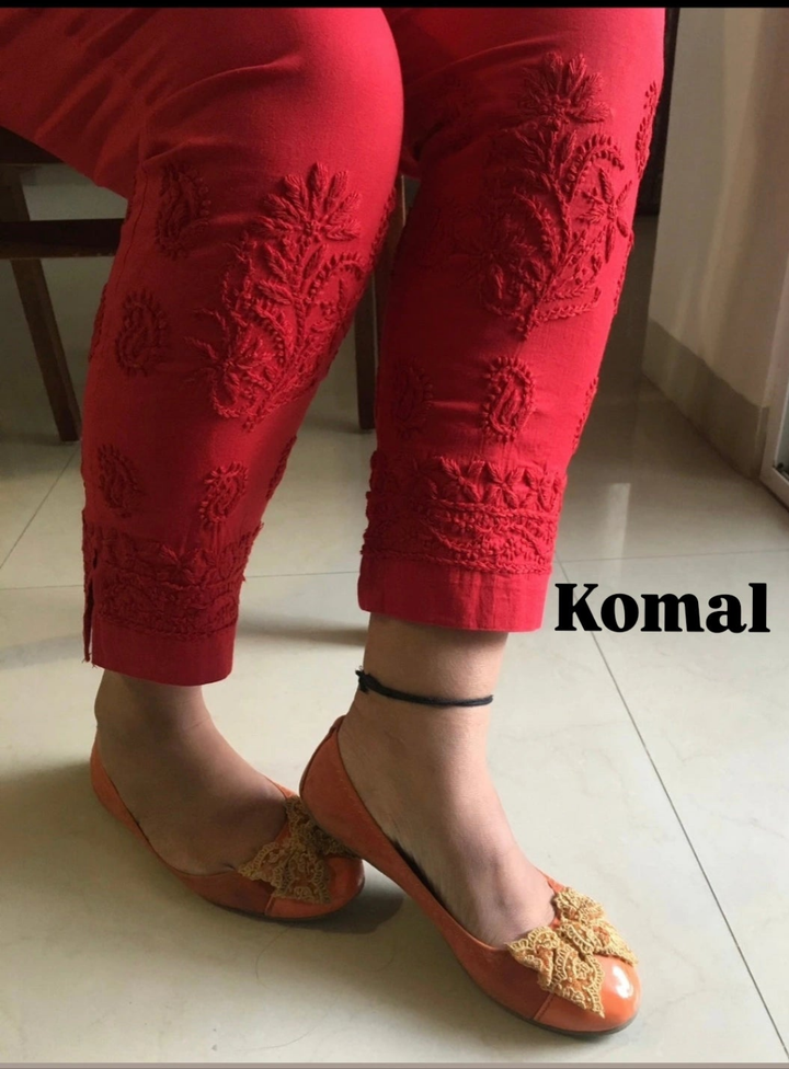 - Decorated with intricate chikankari hand-embroidered patterns in red thread