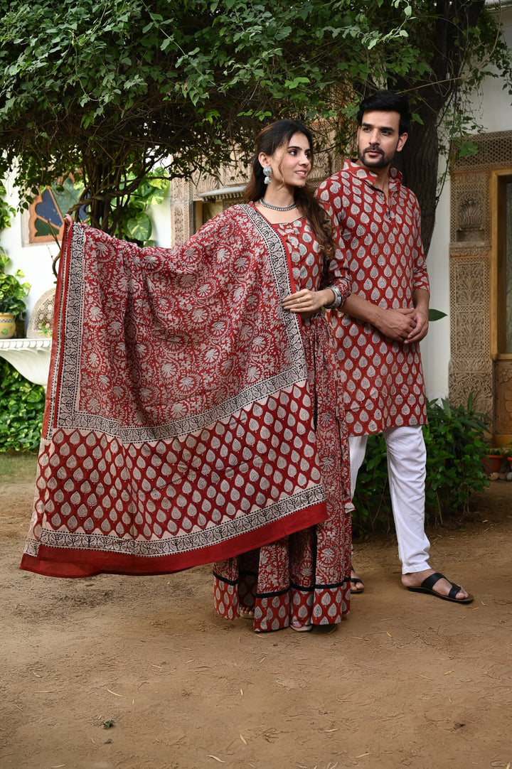 - Kurta:Ā Pure Cotton Bagru Hand Print & Pocket with Exclusive Button.