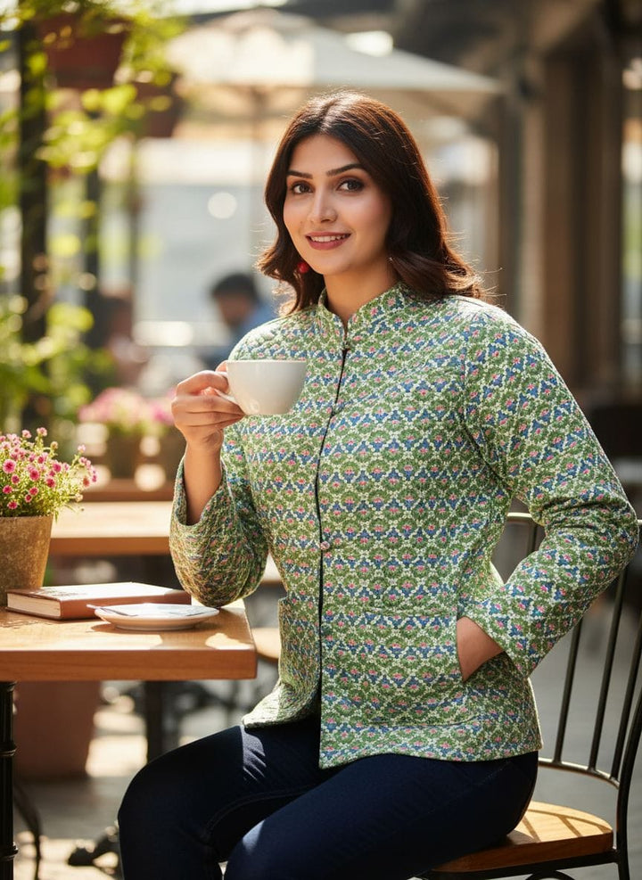 Beautiful Green Pure Cotton Quilted Reversible Print Jackets