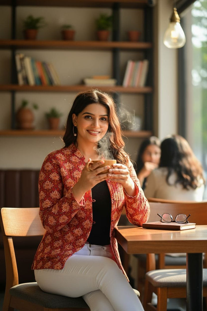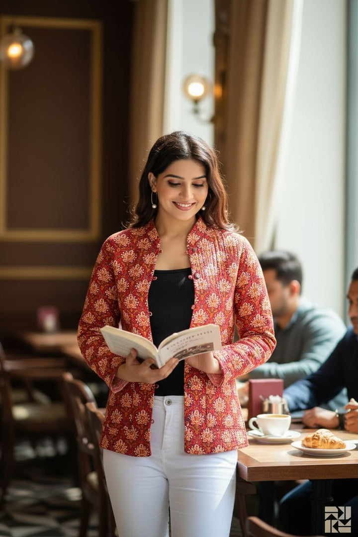 Beautiful Red Pure Cotton Quilted Reversible Print Jackets
