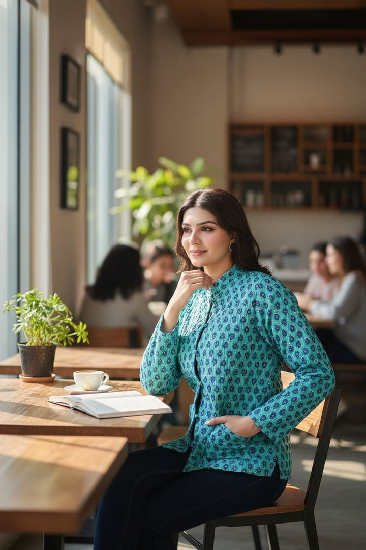 Beautiful Blue Pure Cotton Quilted Reversible Print Jackets