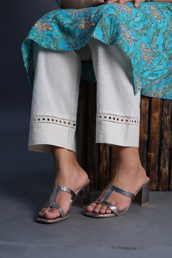 Anam Women Cotton Linen Pants In Cream Color