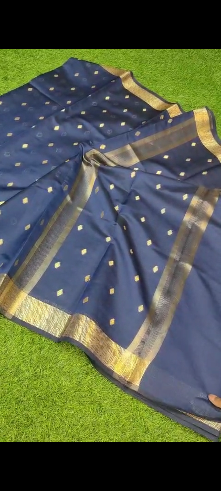 - Beautiful Navy Blue Banarasi Soft Silk Saree