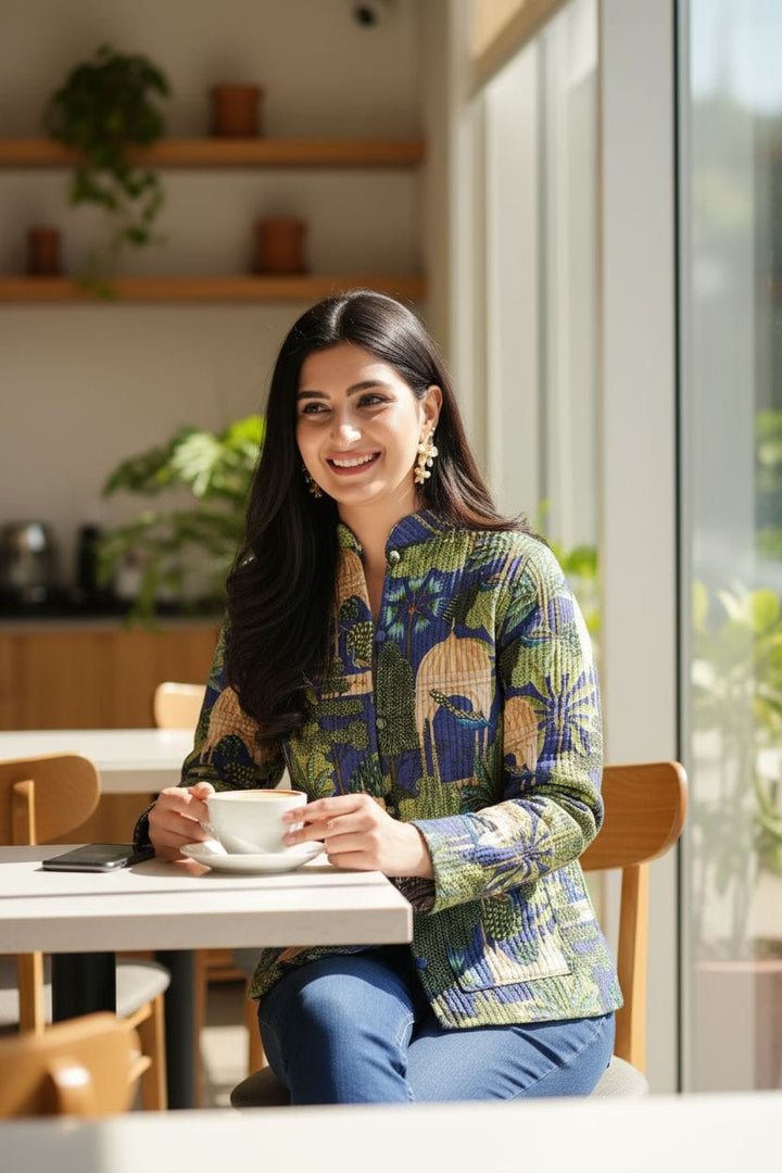 Beautiful Green Pure Cotton Quilted Reversible Print Jackets