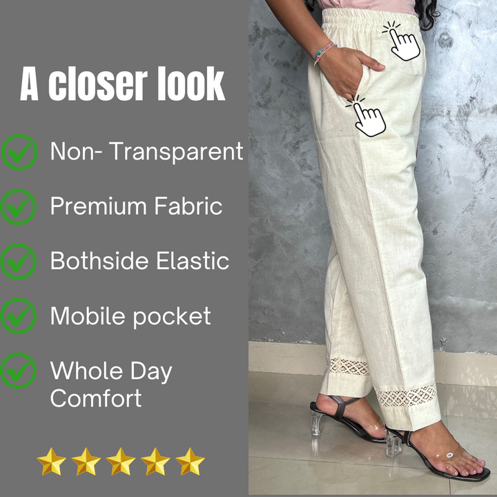 Tasva Tusser Embroidery Straight Pant In Cotton For Women