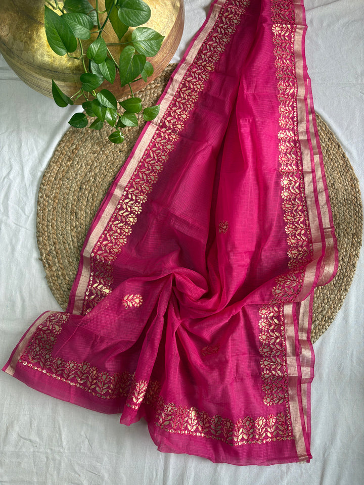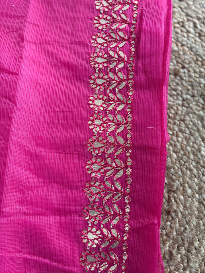 Rani Pink Kota Doria Gota Patti Saree