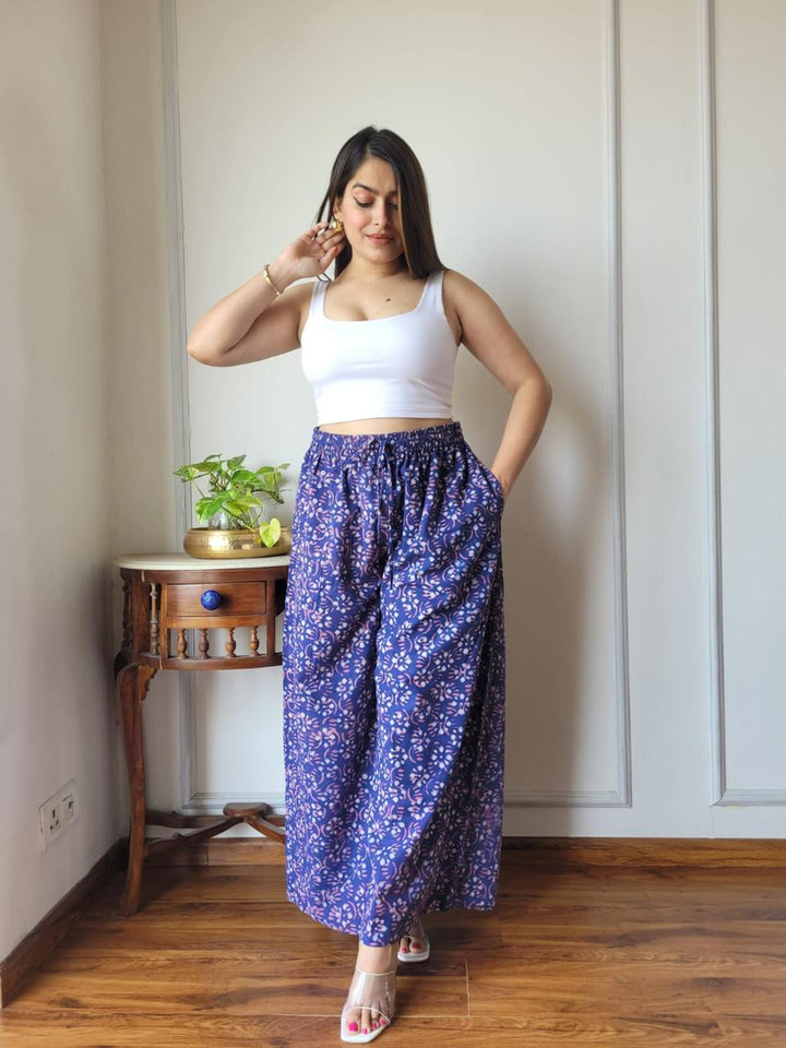 - Jamuni Colour Cotton bagru hand block print palazzo with pockets.