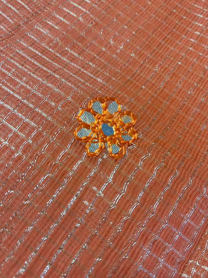 Bandhuri Orange Kota Doria Gota Patti Saree