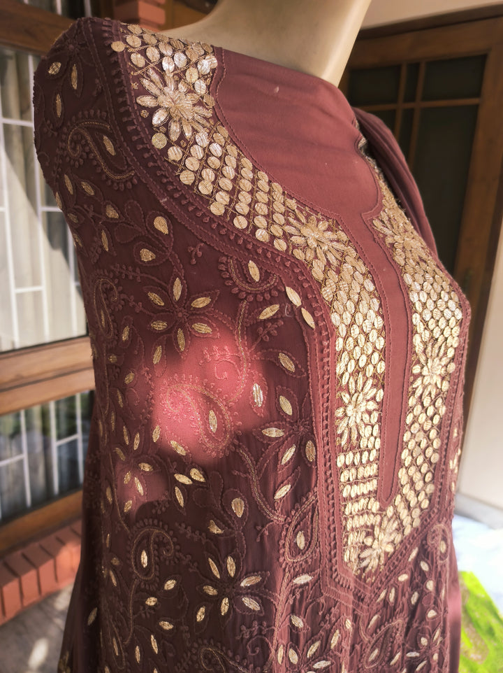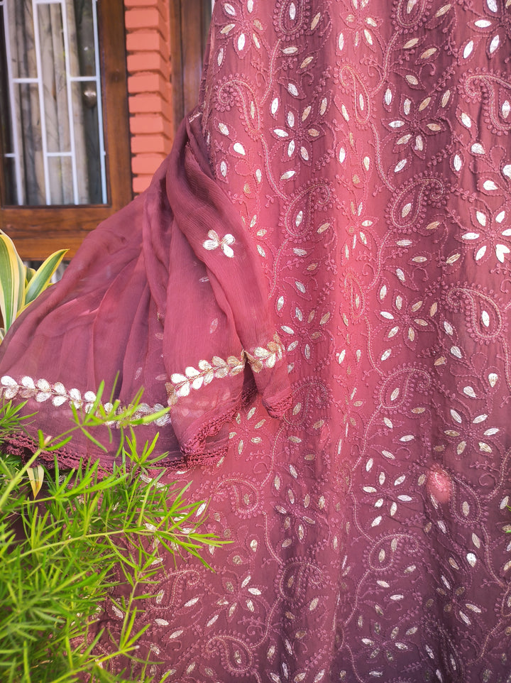 “Gulabi Shaam” Mauve pink Lucknowi Chikankari Gota Patti Salwar Suit(Dress Material)