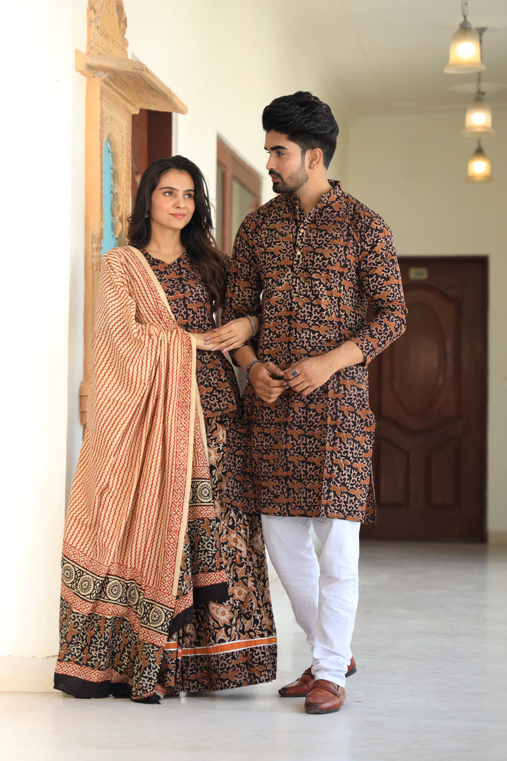 Black colour Pure Cotton Twinning Couple Set In Block Print Sale price₹1,999.00 INR Regular price₹3,999.00 INR