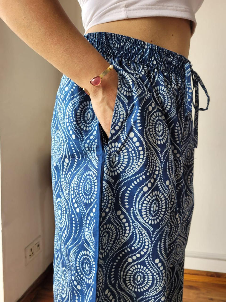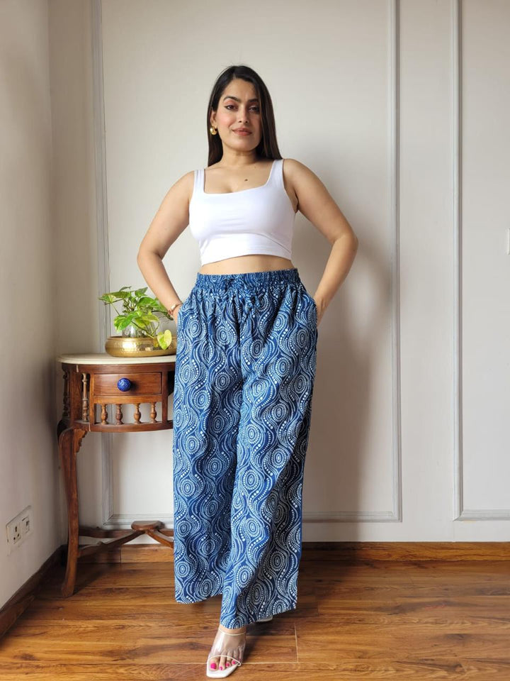 Blue Bagru Hand Block Printed Cotton Palazzo