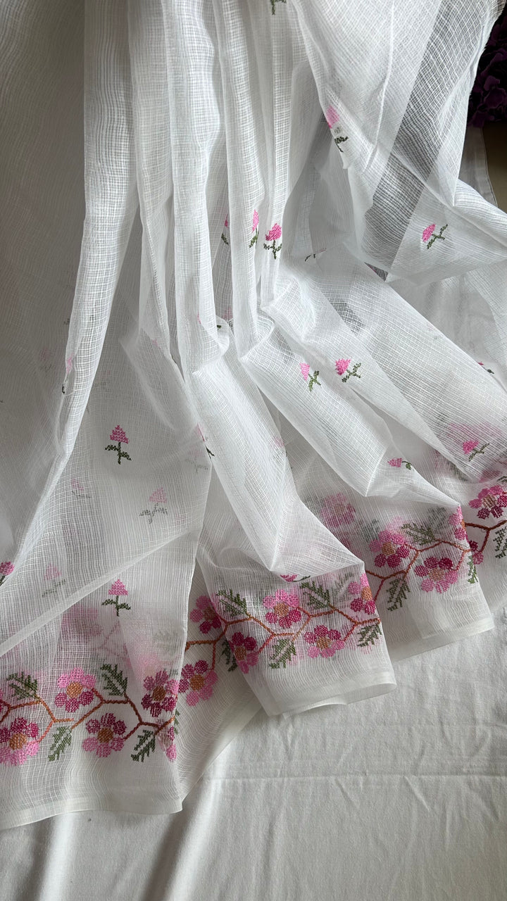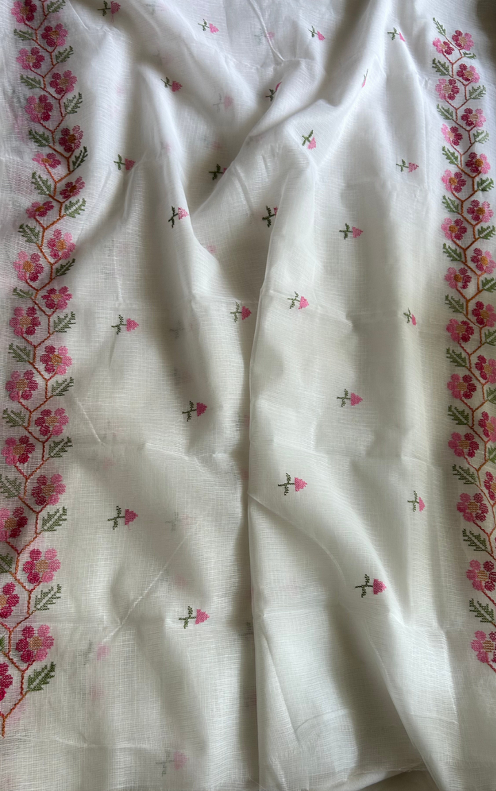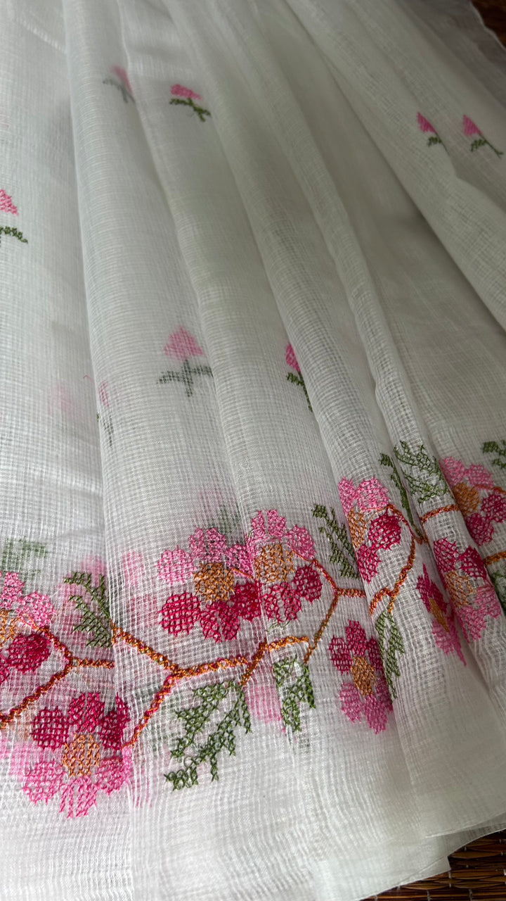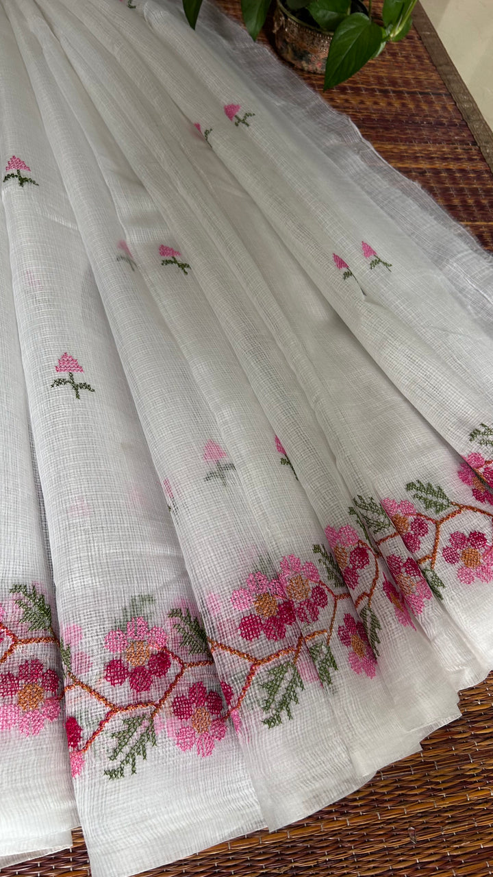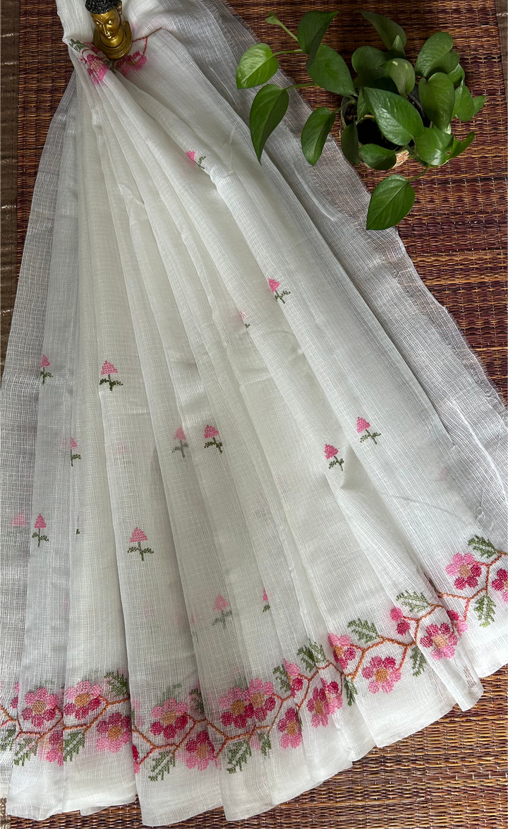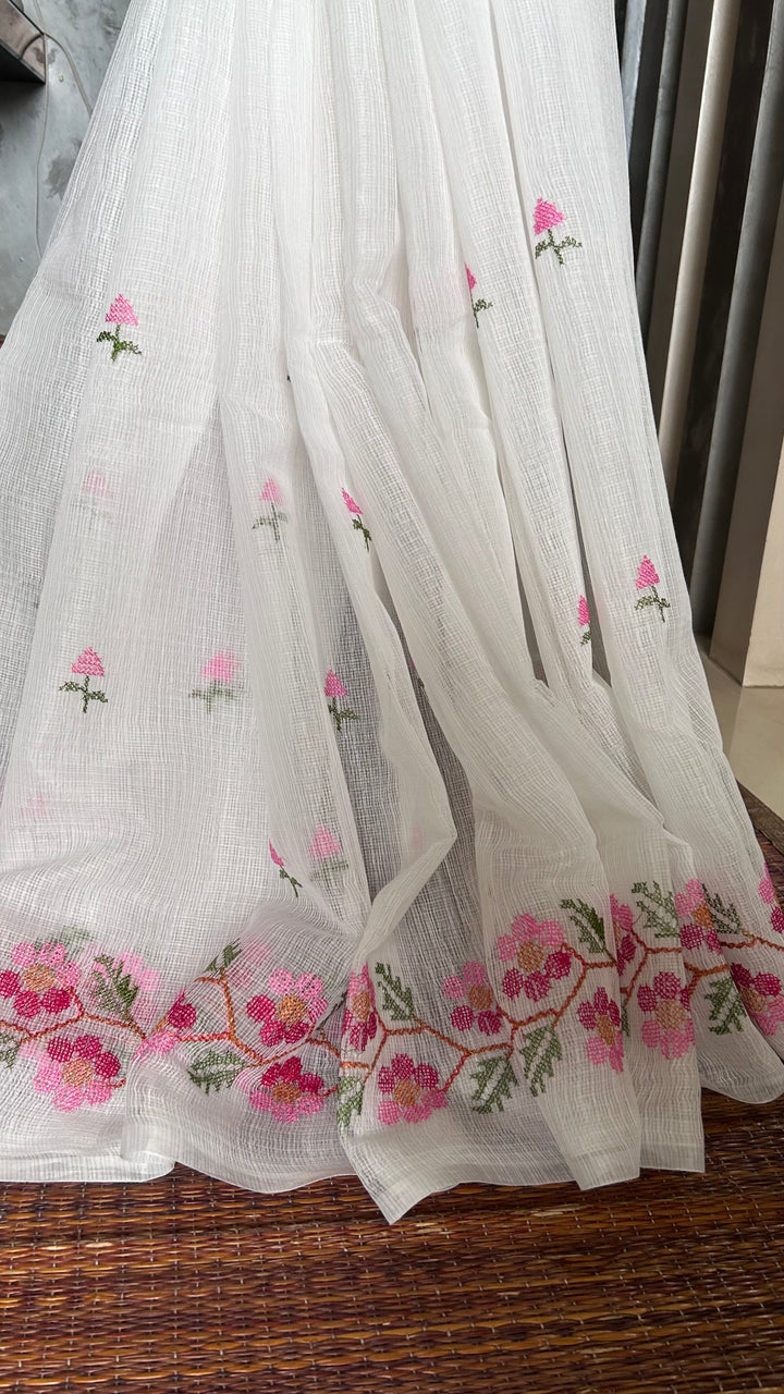 Morni- Cross Stitch Kota Doria Embroidery Work Saree In White