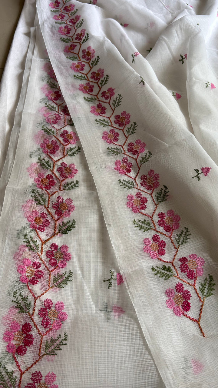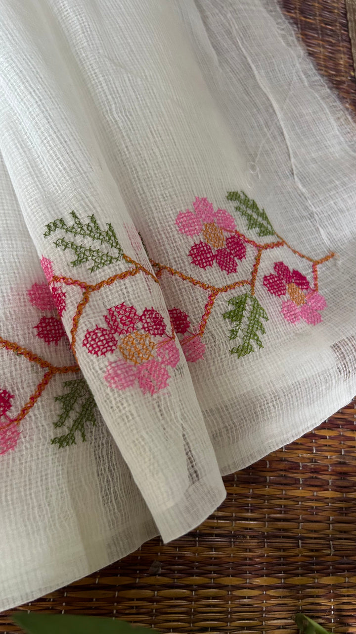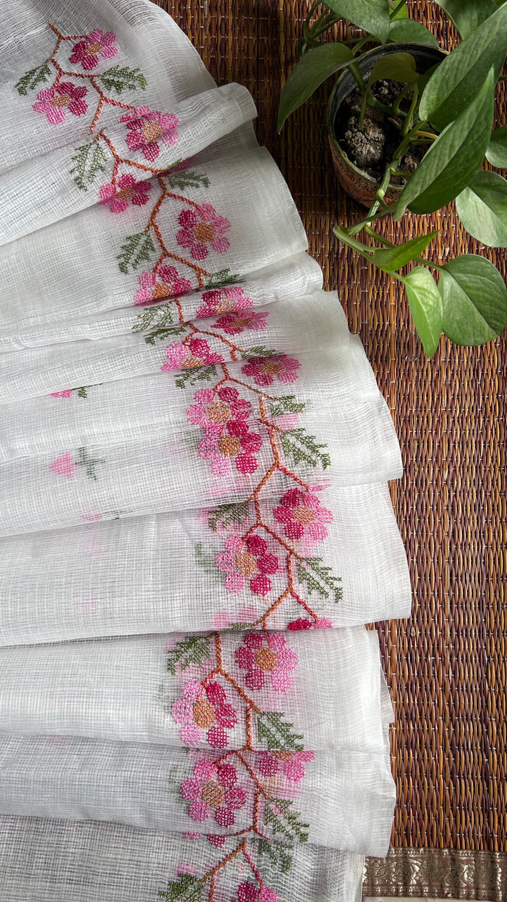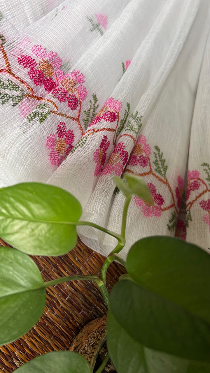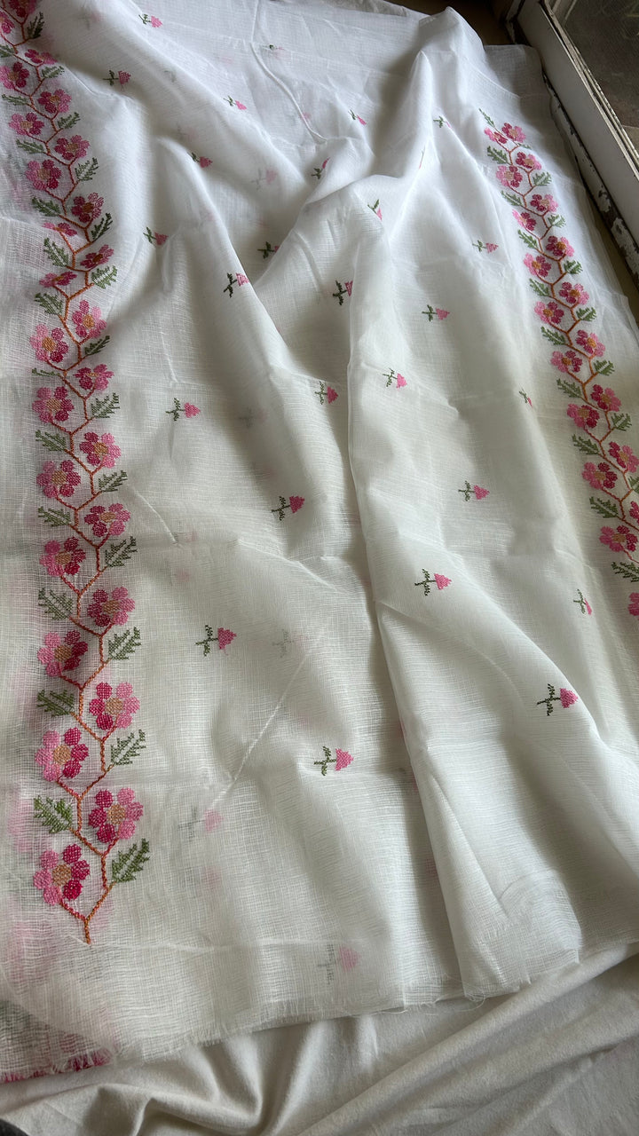 Morni- Cross Stitch Kota Doria Embroidery Work Saree In White