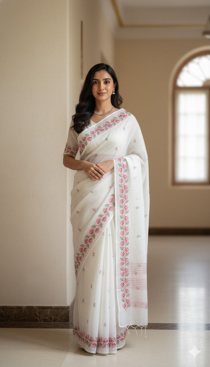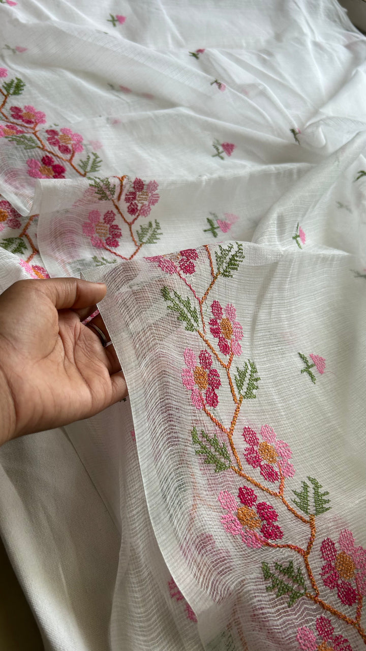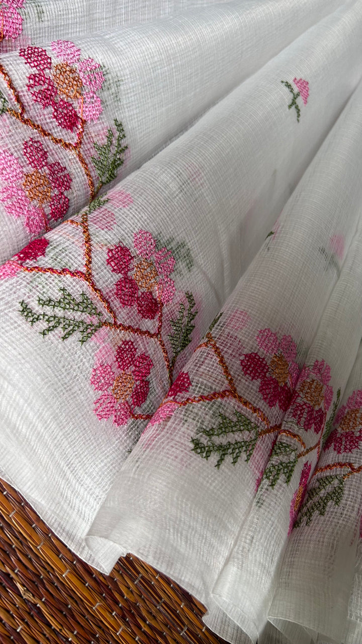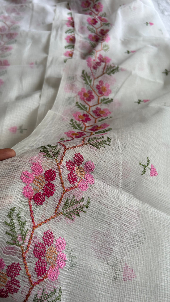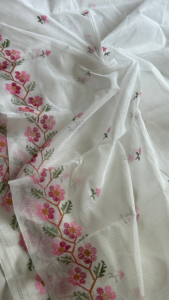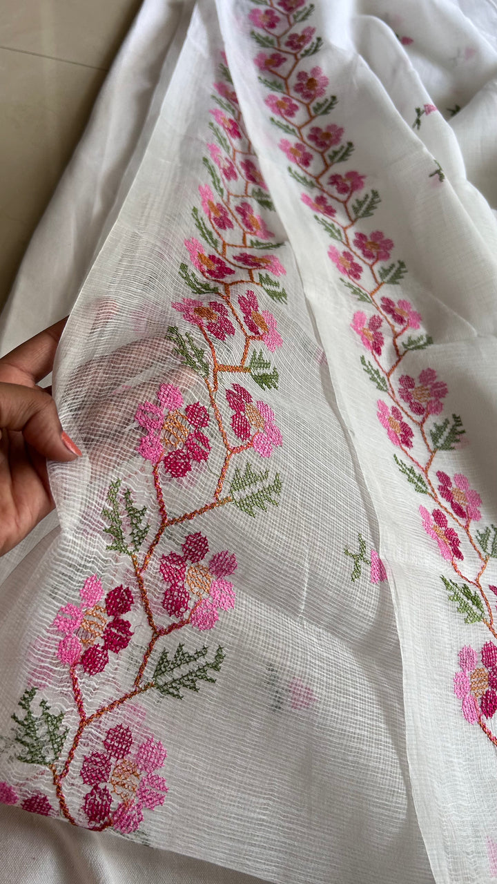 Morni- Cross Stitch Kota Doria Embroidery Work Saree In White