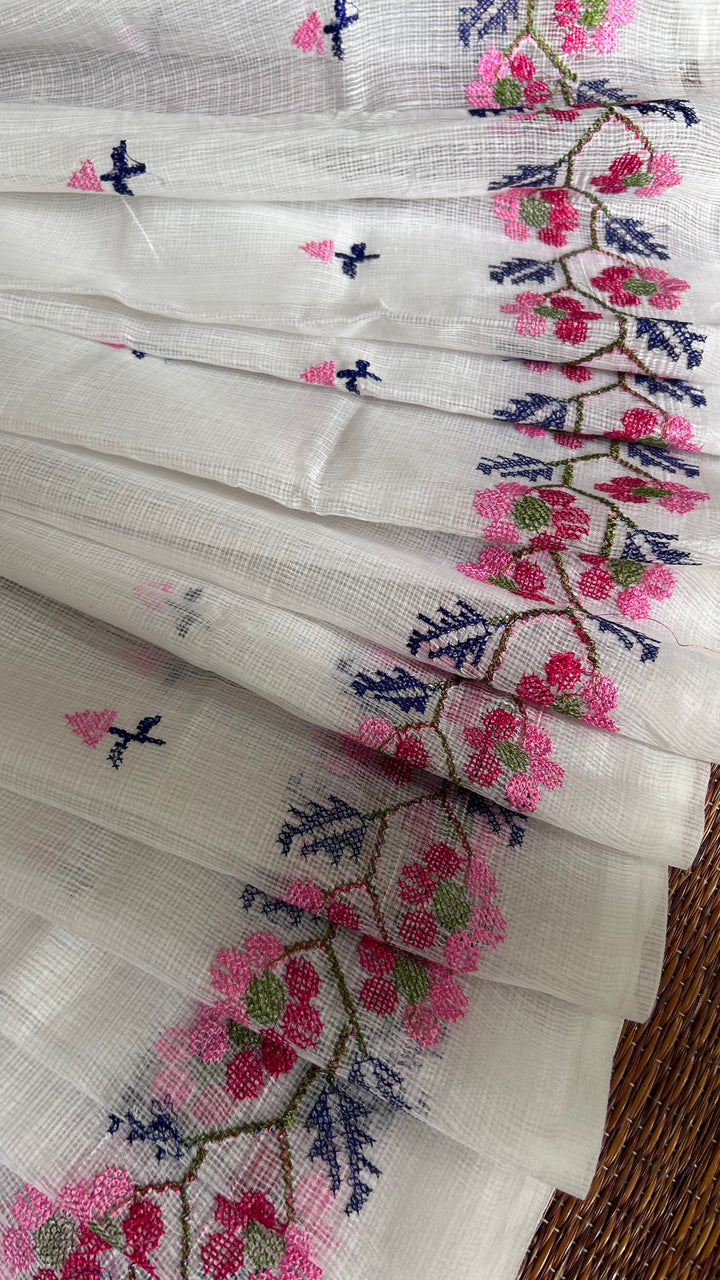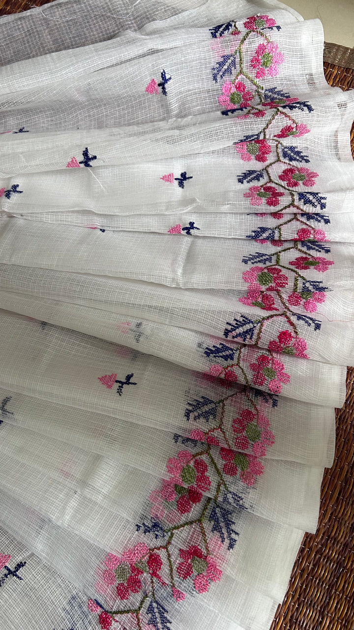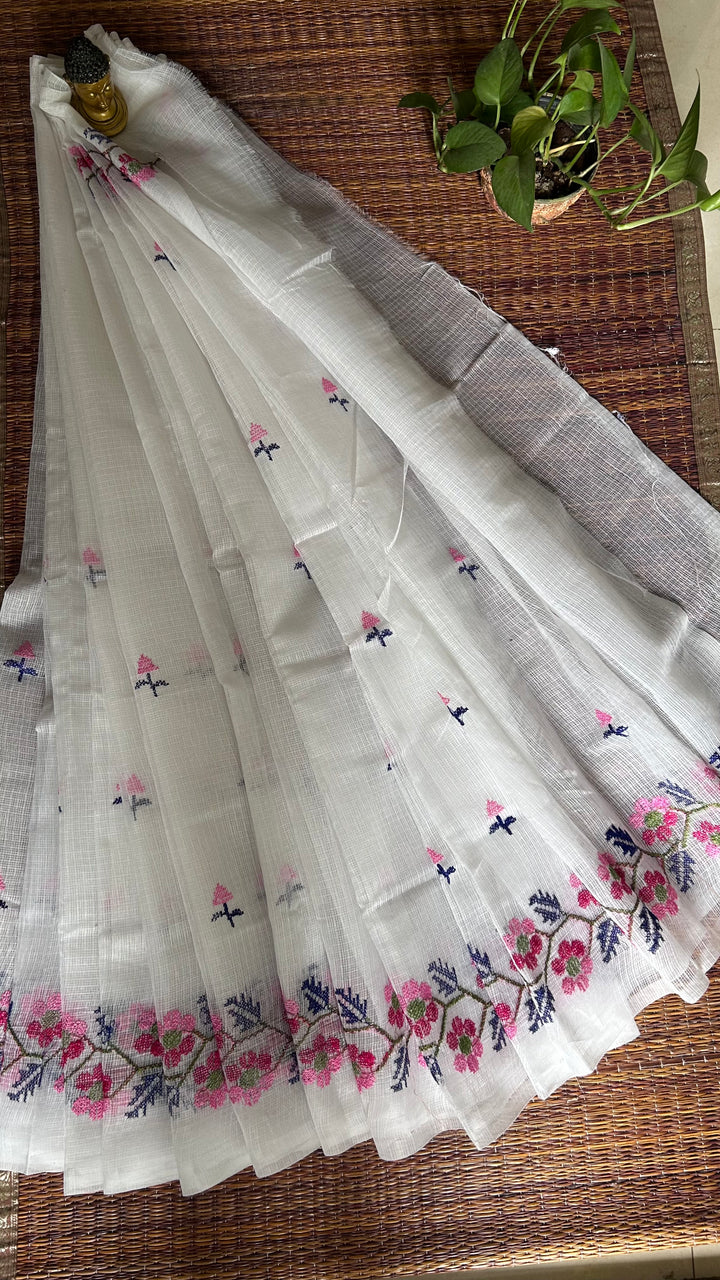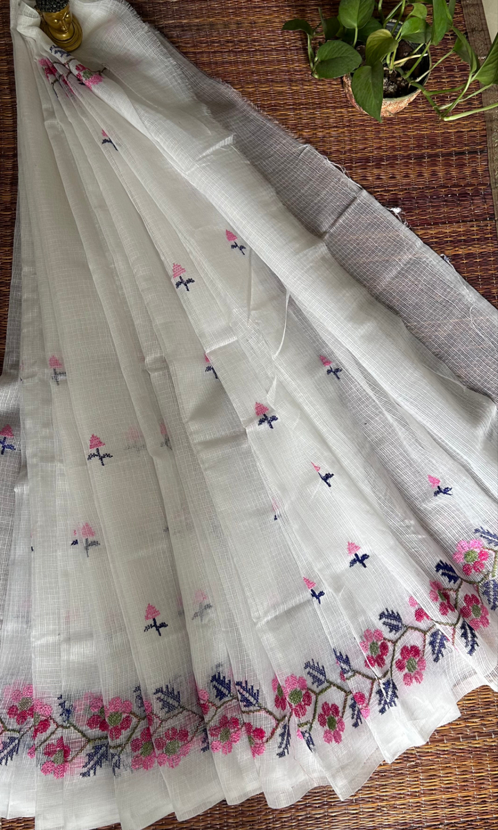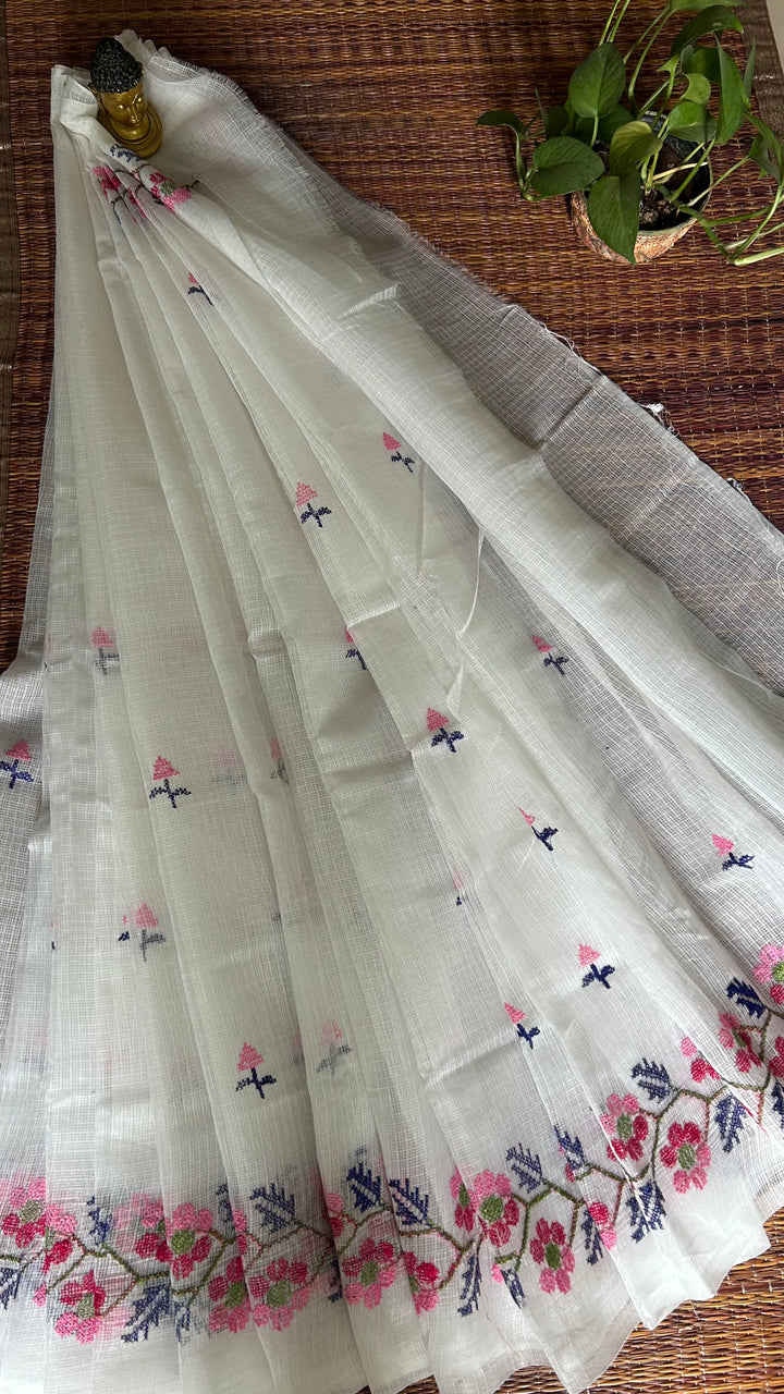 Rajmati- Cross Stitch Kota Doria Embroidery Work Saree In White