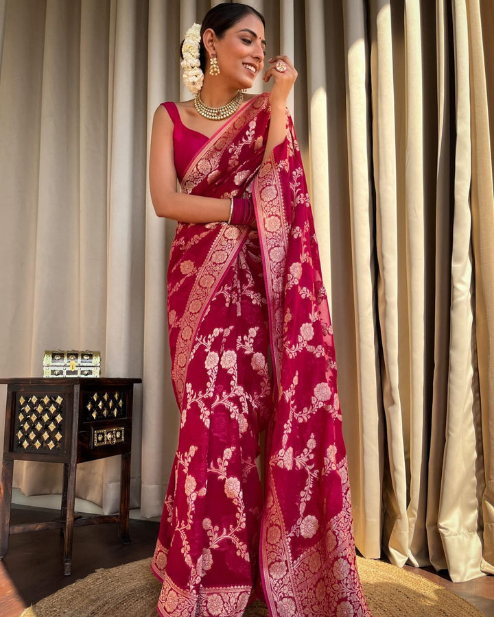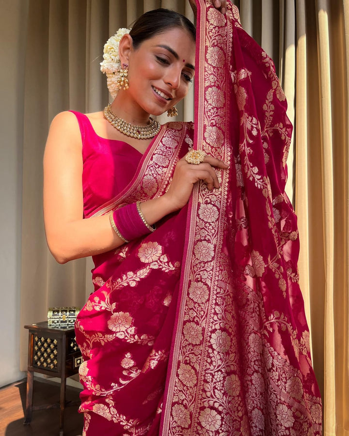 Hot Pink Banarasee Semi Georgette Zari Saree