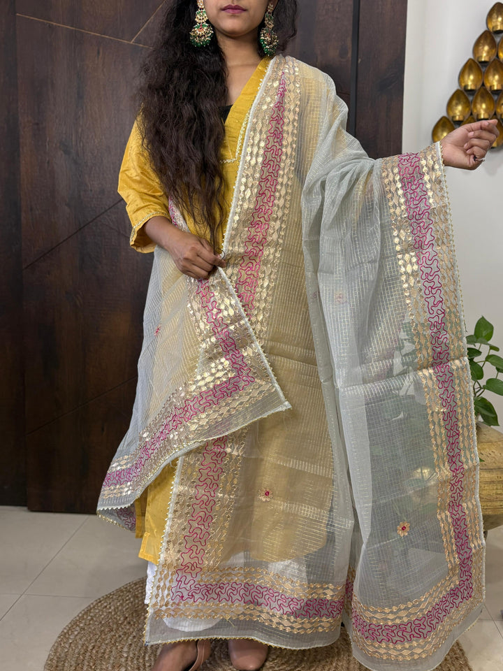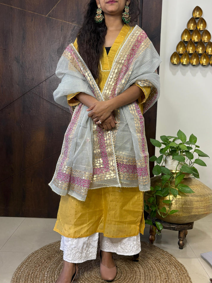 Grey Kota Doria Heavy Gota Patti Work Dupatta