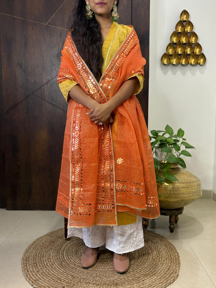 Orange Kota Doria Heavy Gota Patti Work Dupatta