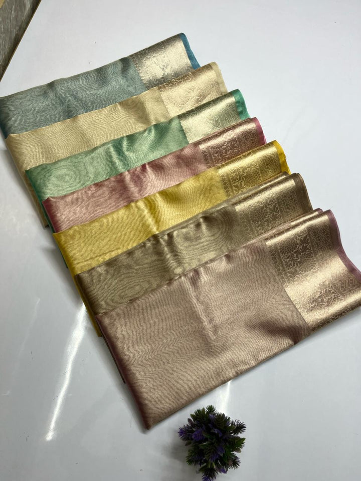 Shimmer Rose Gold Banarasi Soft Tissue Saree