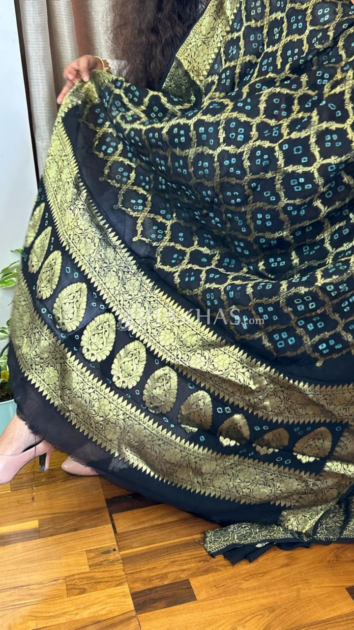 Black Banarasi Gharchola Georgette Dupatta