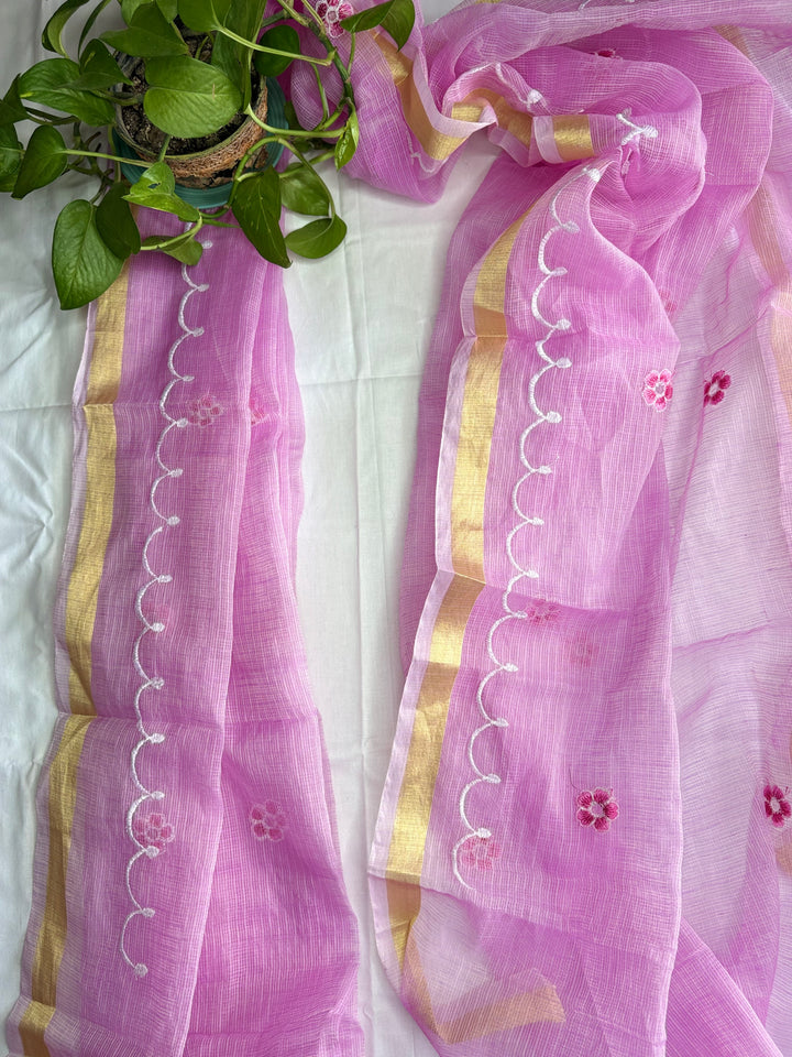 Kota Doria Embroidered Suit Set In Pink Comes With 3 Pieces Suit 2.5 Mtr Top In Kota ,2.5 Mtr Dupatta In Kota,2.5 Mtr Bottom In Cotton. You Can Carry Beautiful Natural Stone Earrings With It. This Kota Doria Suit Has Beautiful Work Done By Our Karigars.,Free Shipping And Cod Available, Shipping Worldwide.