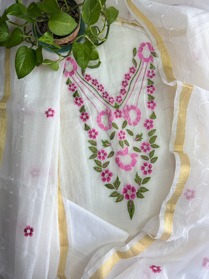 Kota Doria Embroidered Suit Set In white Comes With 3 Pieces Suit 2.5 Mtr Top In Kota ,2.5 Mtr Dupatta In Kota,2.5 Mtr Bottom In Cotton. You Can Carry Beautiful Natural Stone Earrings With It. This Kota Doria Suit Has Beautiful Work Done By Our Karigars.,Free Shipping And Cod Available, Shipping Worldwide.