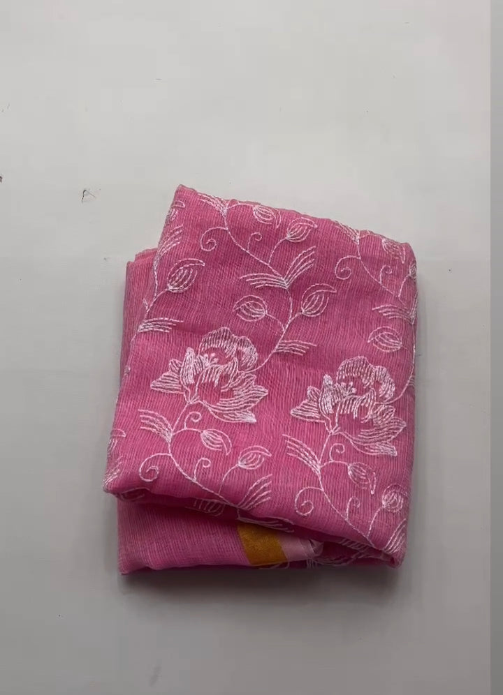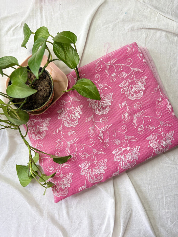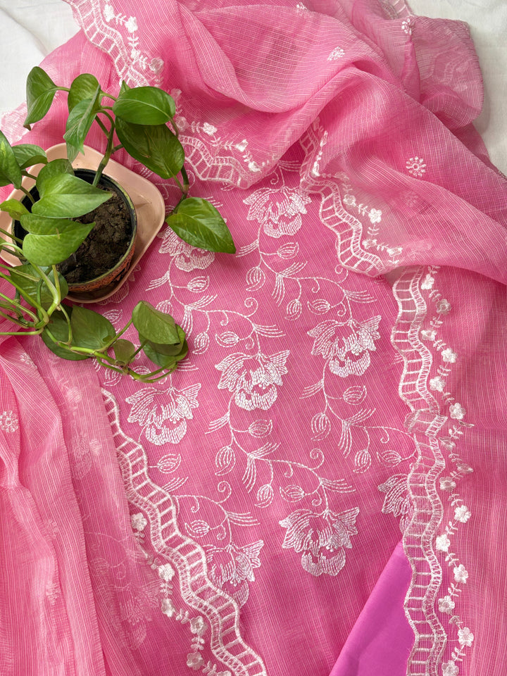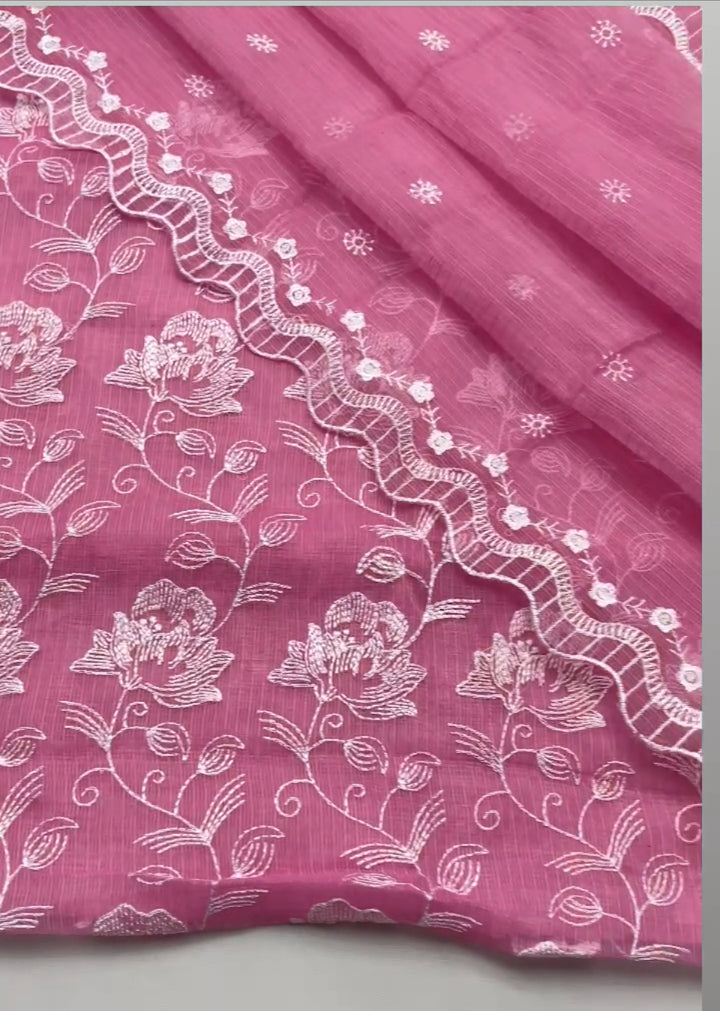 Beautiful Kota Doriya Embridery Work Suit In pink.