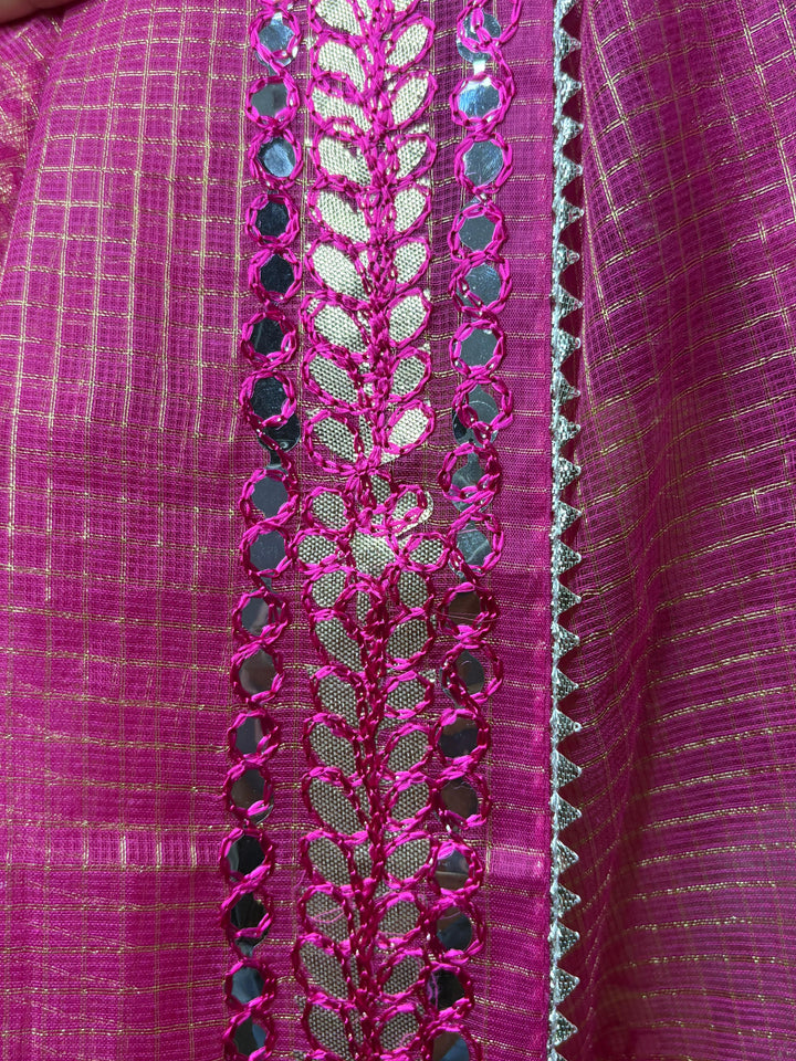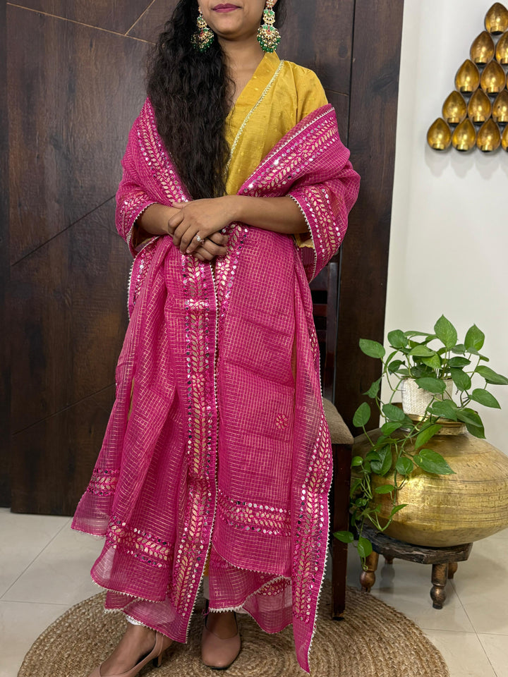 Pink Kota Doria Heavy Gota Patti Work Dupatta