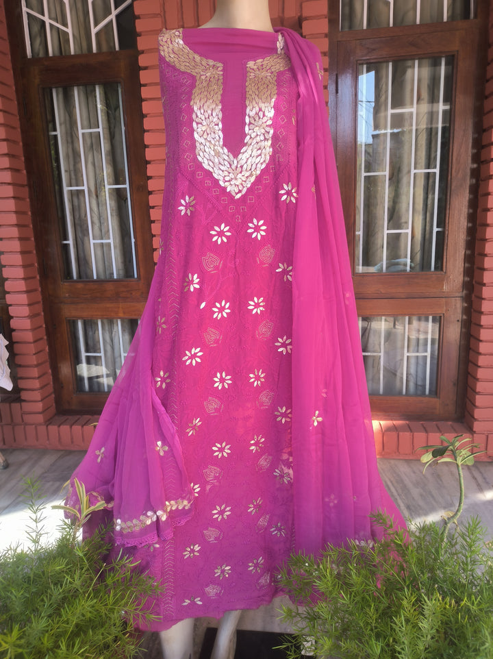 "Gulnisha” Pink Lucknowi Chikankari Gota Patti Salwar Suit(Dress Material)